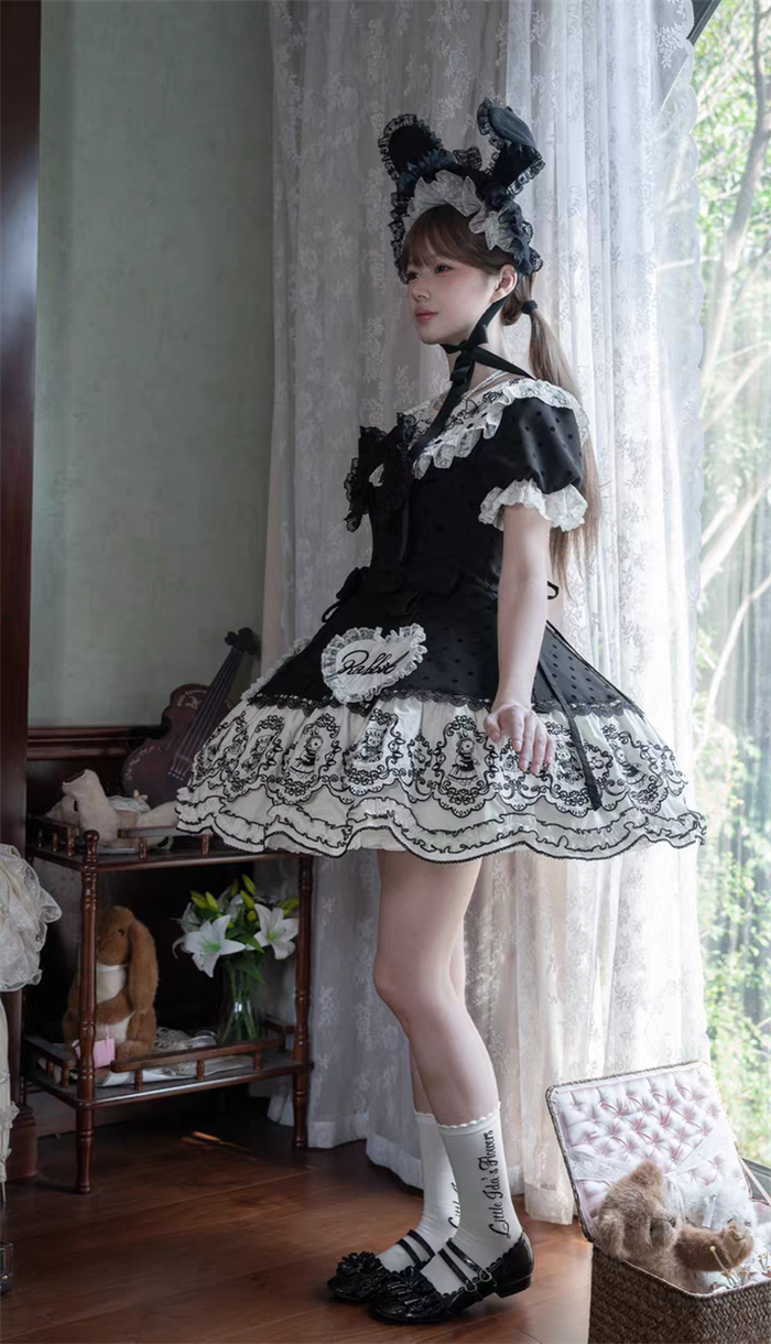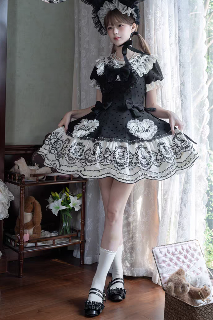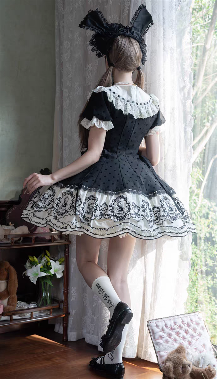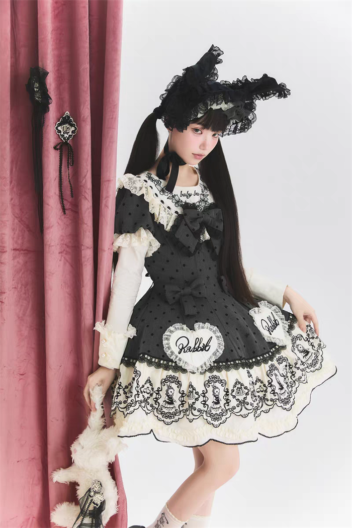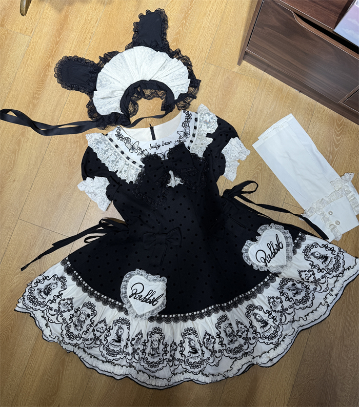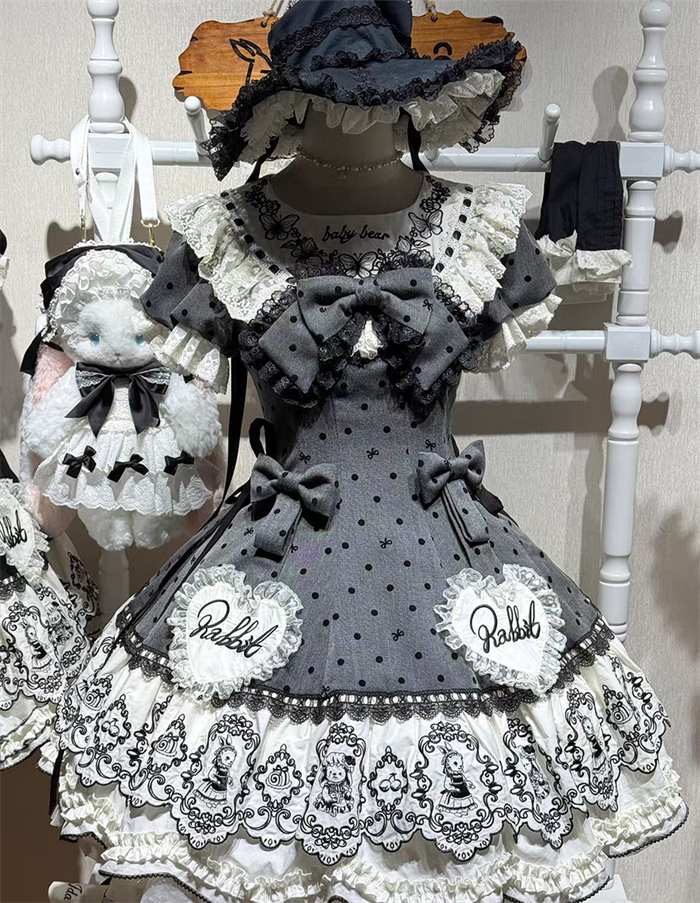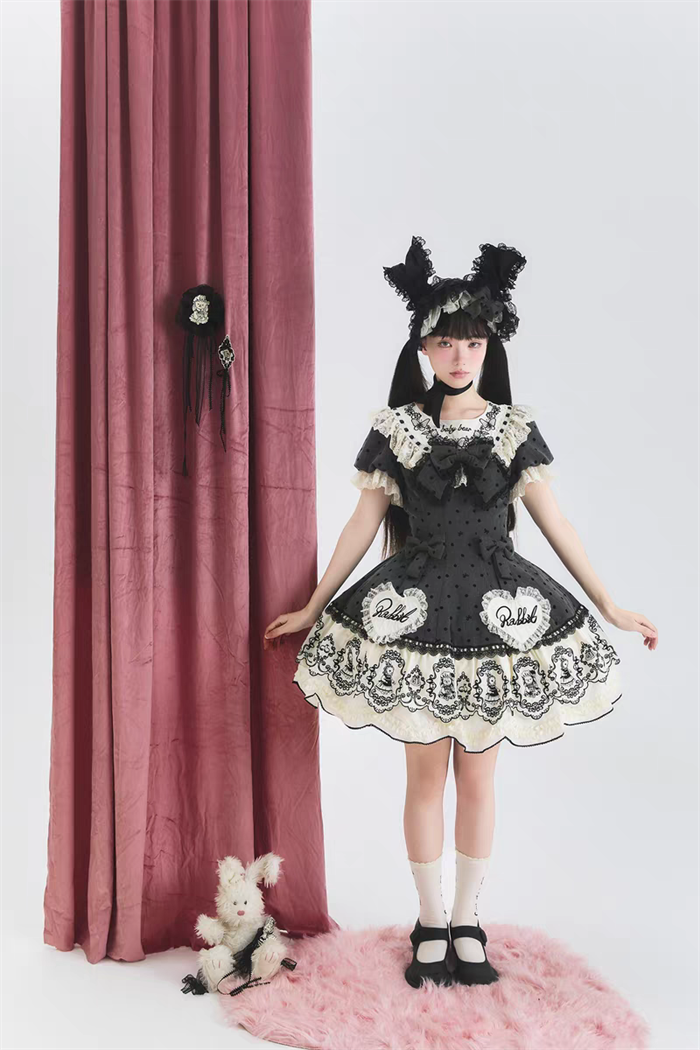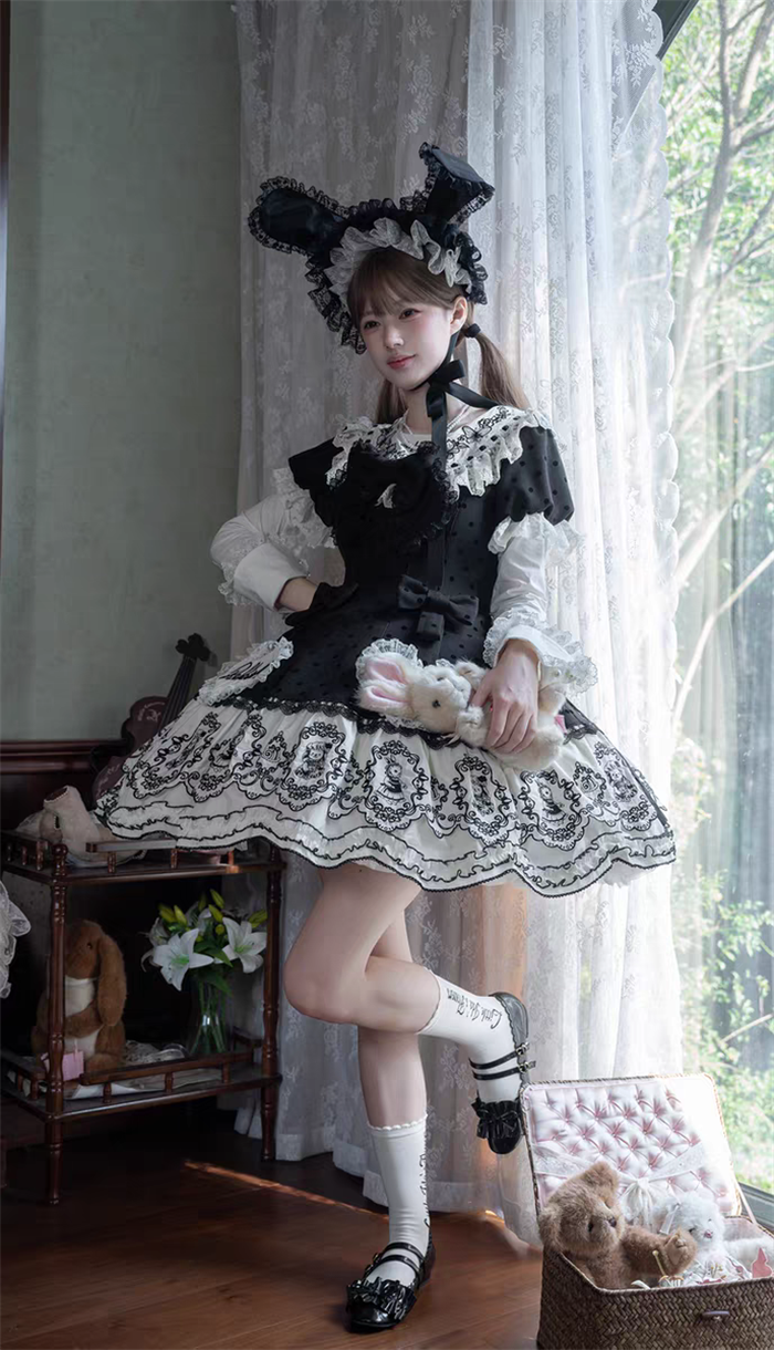 | Product Name | Van Rabbit - Seal Rabbit - Vintage Polka Dot Sweet Lolita OP Dress Set |