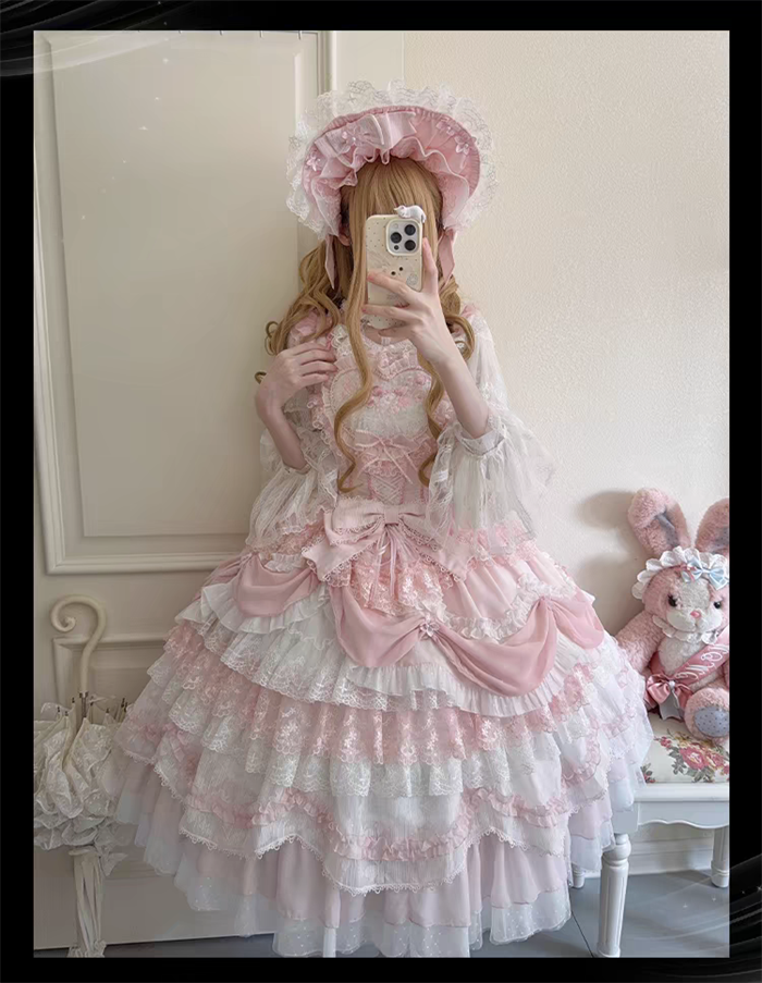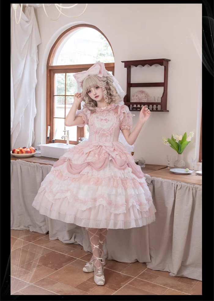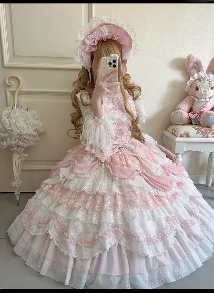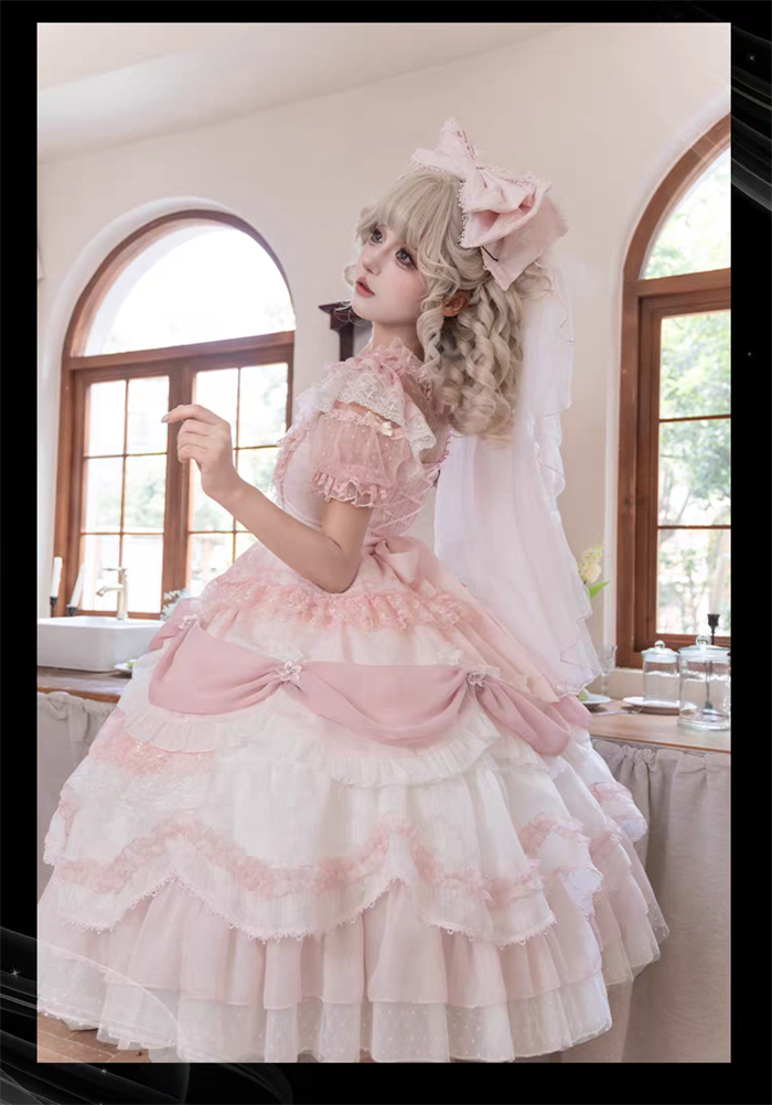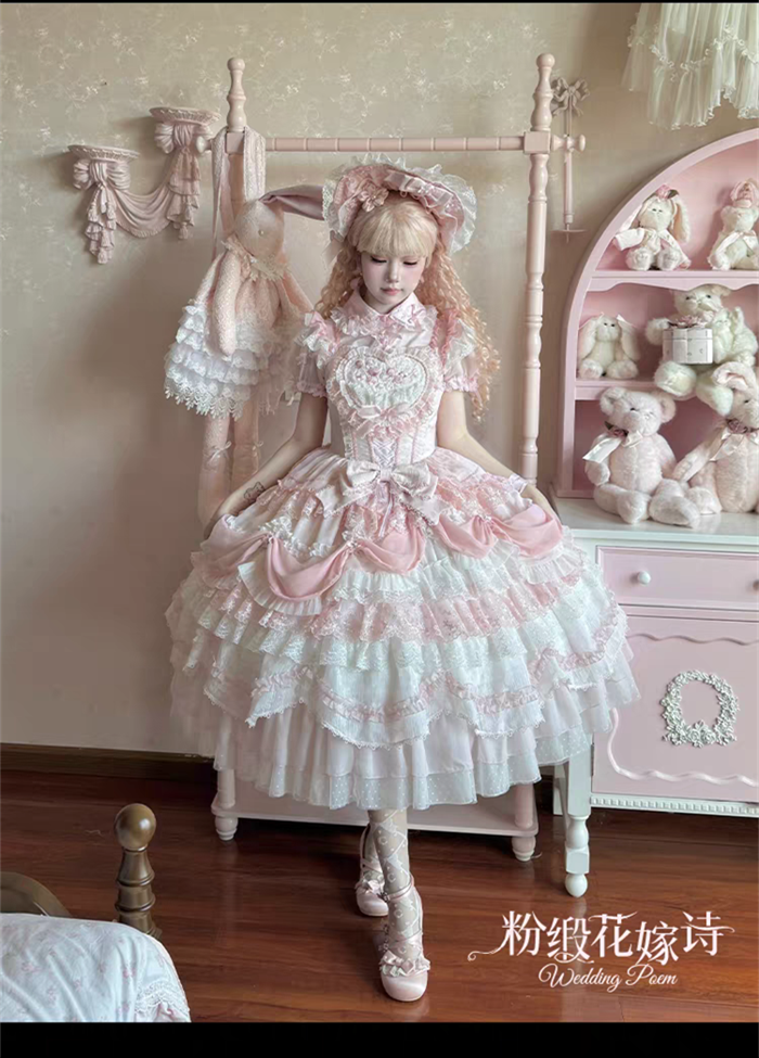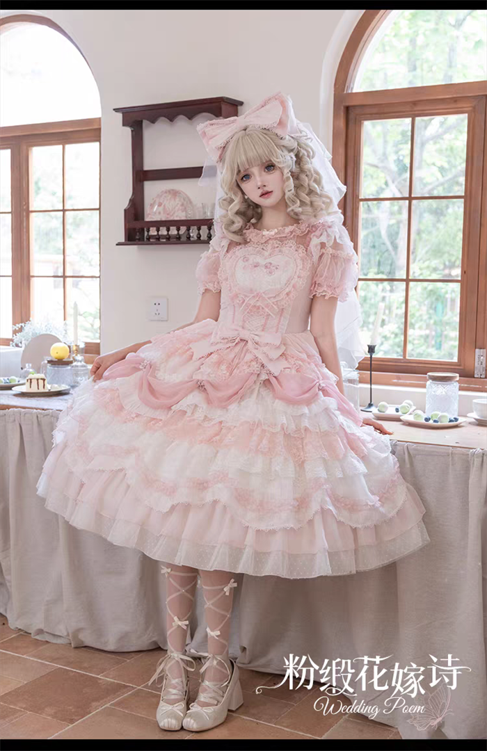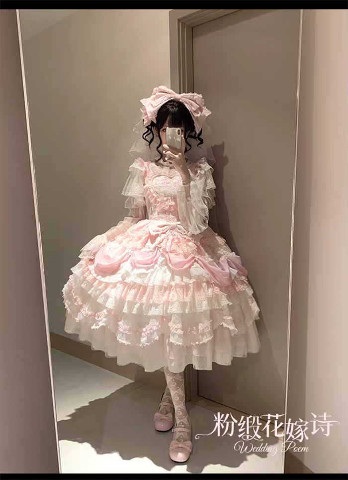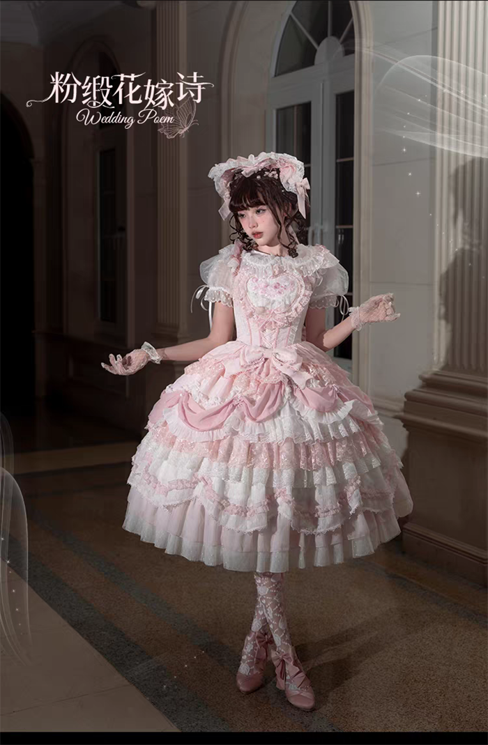 | Product Name | Wedding Poem - Gorgeous Sweet Tea Party Princess Wedding Rococo Lolita JSK, Bonnet and A Bow Tailing |