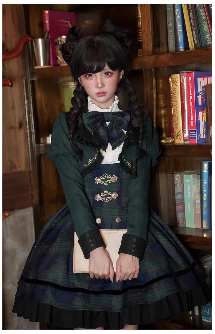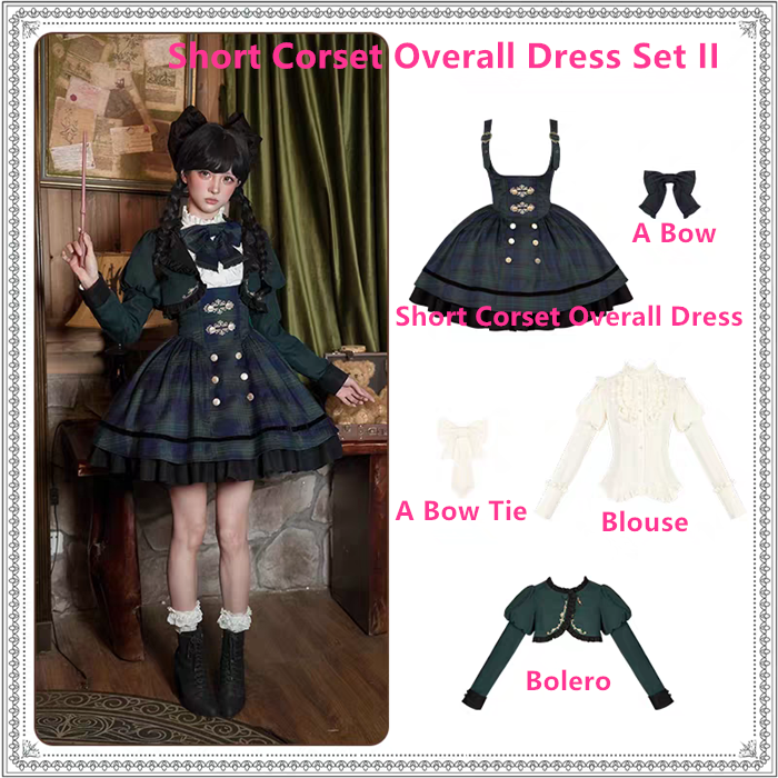 Short Corset Overall Dress Set II=Short Corset Overall Dress+Blouse+Bolero+A Bow Tie+A Bow