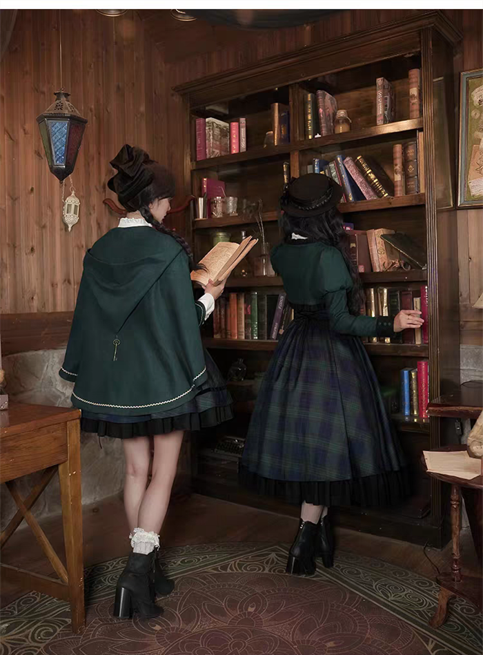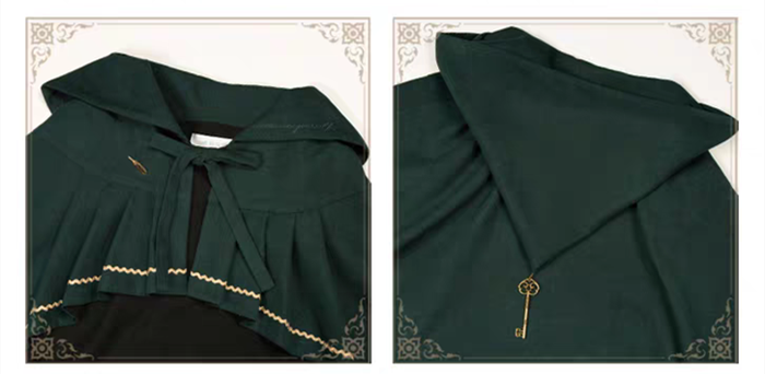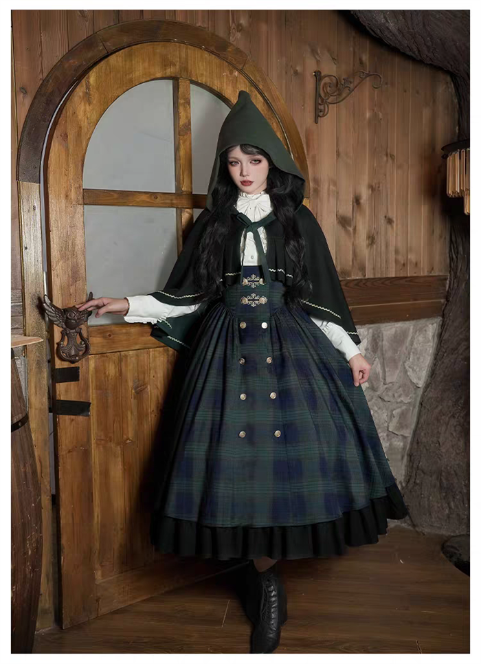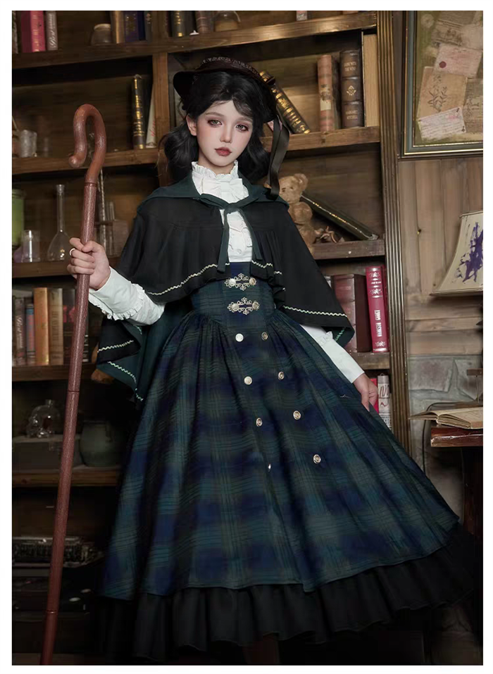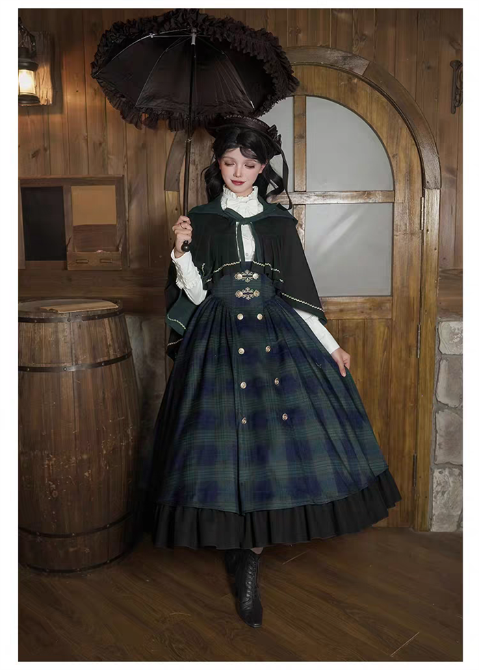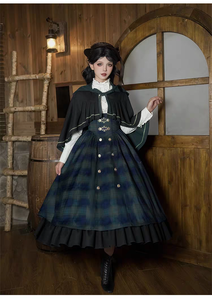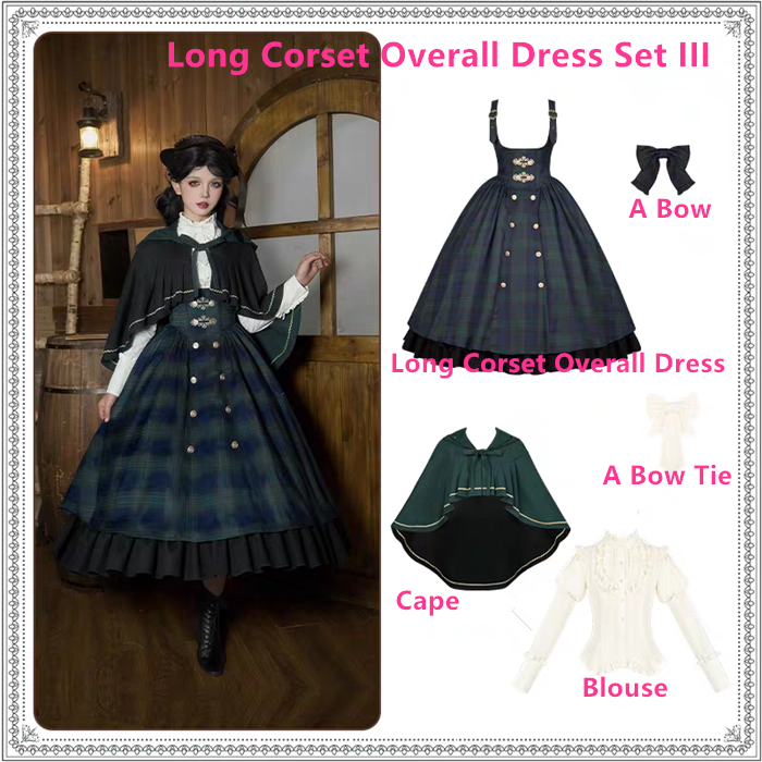 Long Corset Overall Dress Set III=Long Corset Overall Dress+Cape+Blouse+A Bow Tie+A Bow