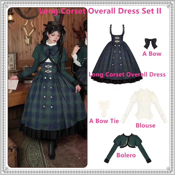 Long Corset Overall Dress Set II=Long Corset Overall Dress+Blouse+Bolero+A Bow Tie+A Bow