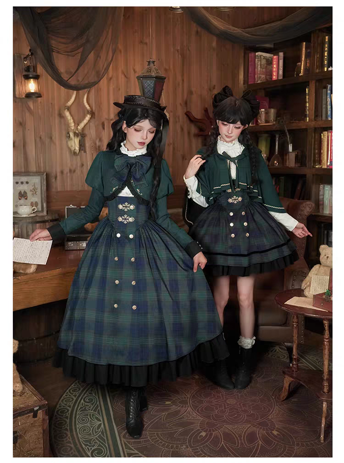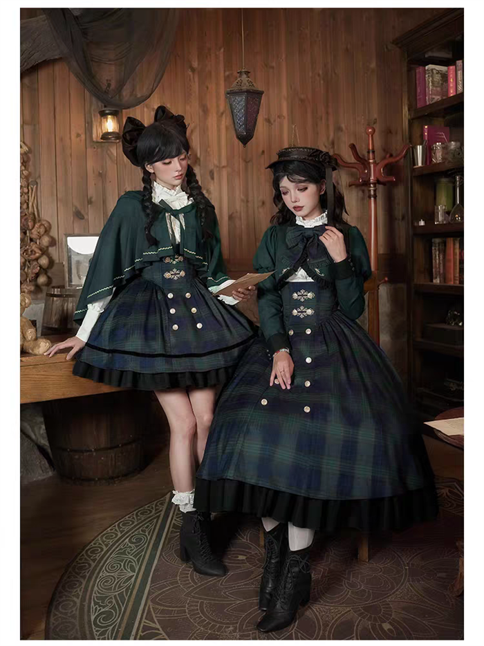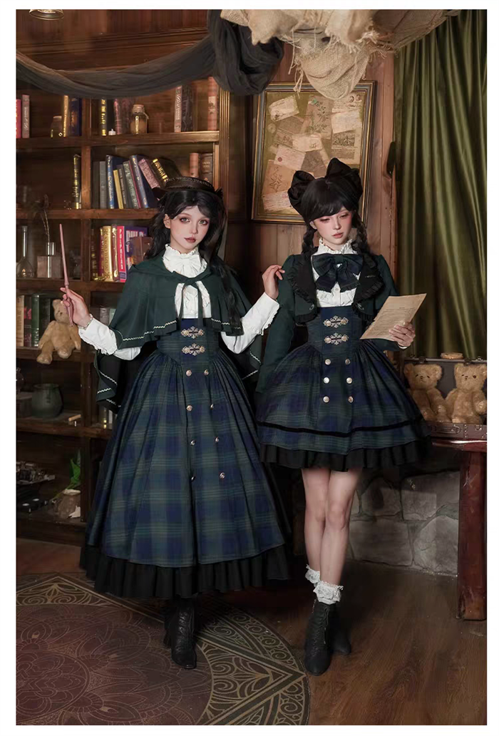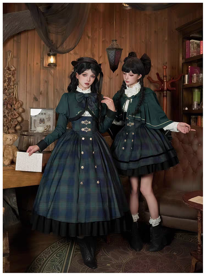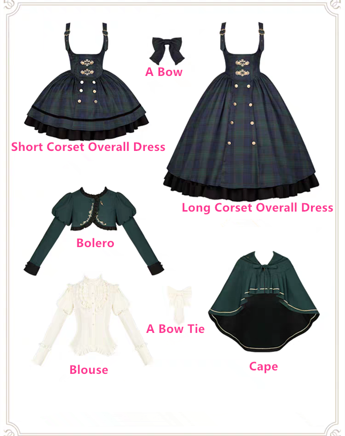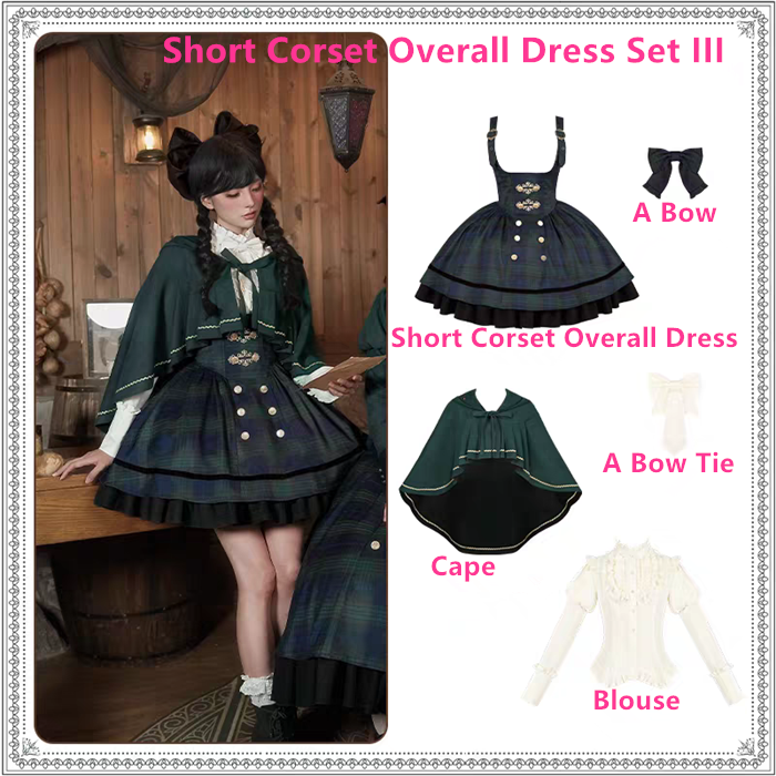 Short Corset Overall Dress Set III=Short Corset Overall Dress+Cape+Blouse+A Bow Tie+A Bow