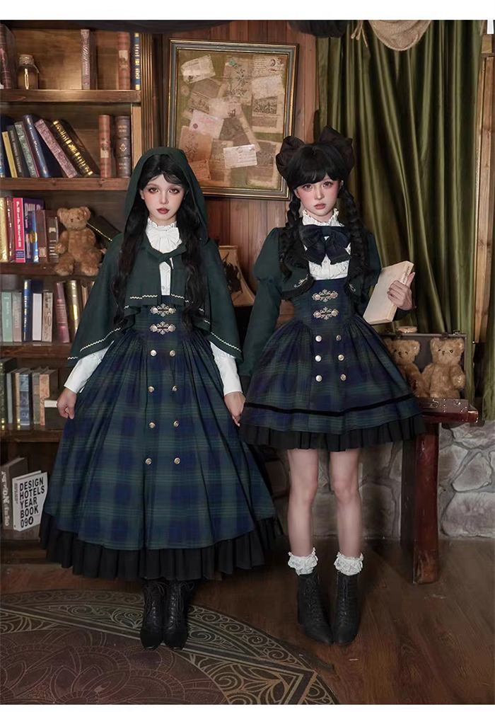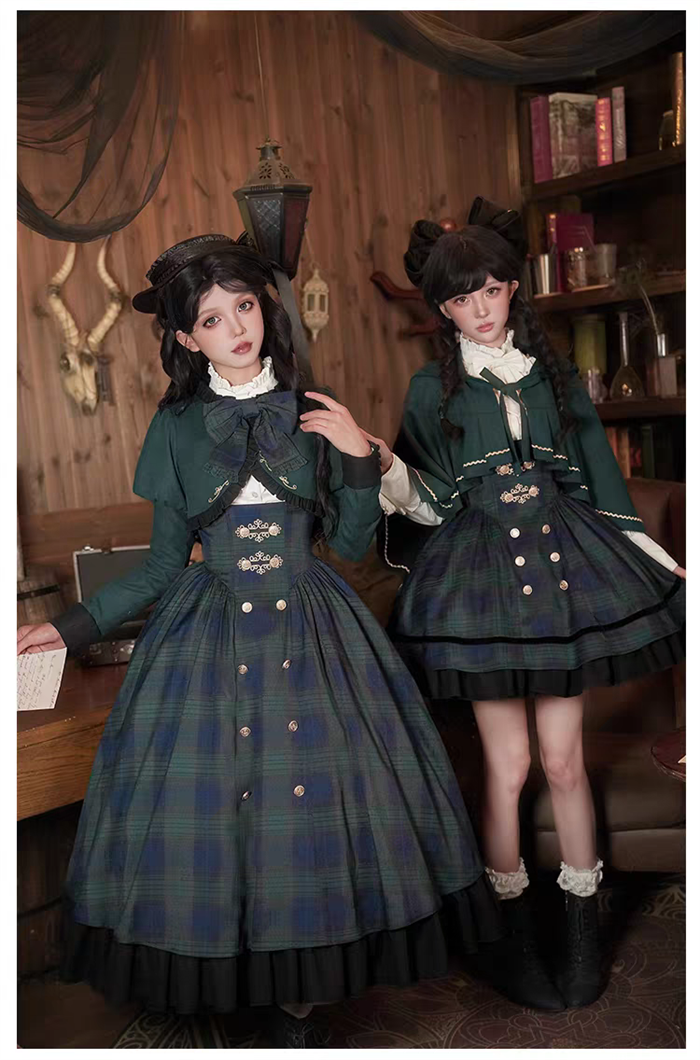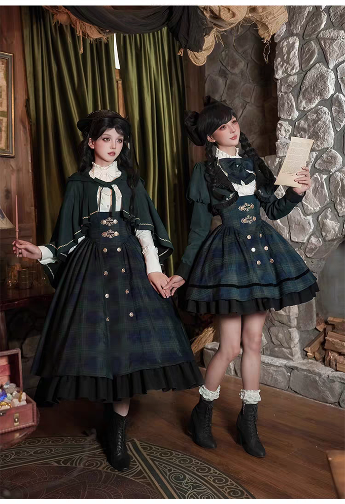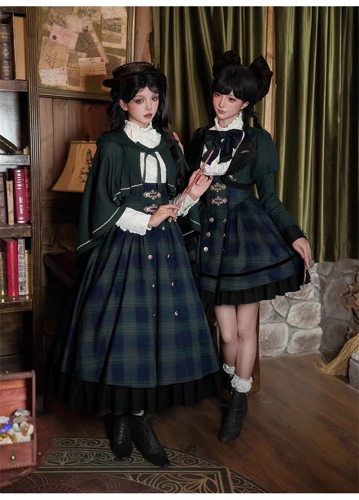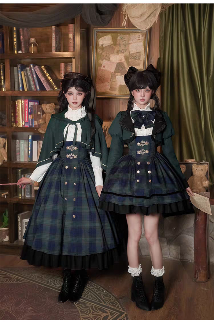 Short Corset Overall Dress Set III=Short Corset Overall Dress+Cape+Blouse+A Bow Tie+A Bow
