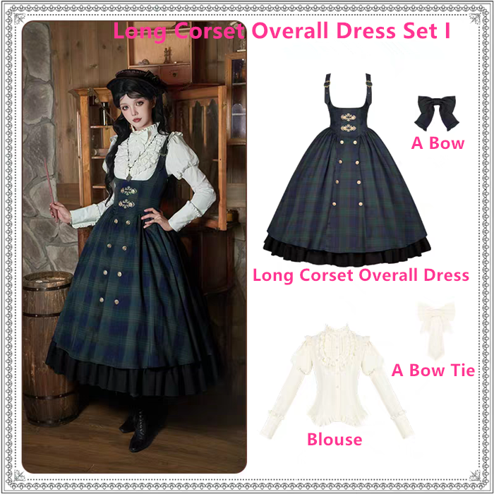 Long Corset Overall Dress Set I=Long Corset Overall Dress+Blouse+A Bow Tie+A Bow