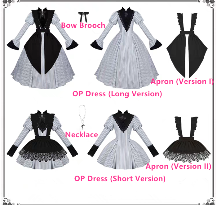 Below are the OP Dress, Apron, Necklace and Bow Brooch you will get when you purchase