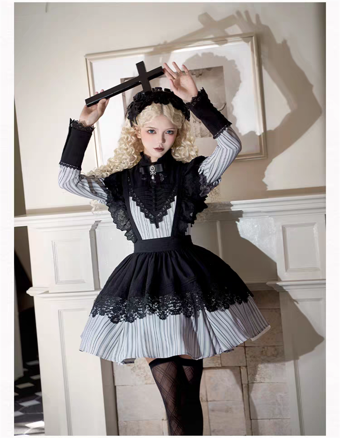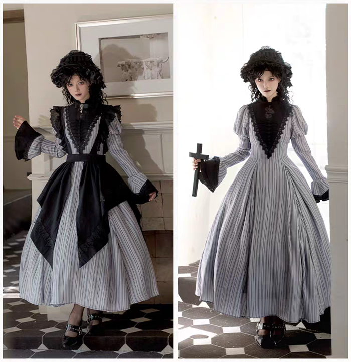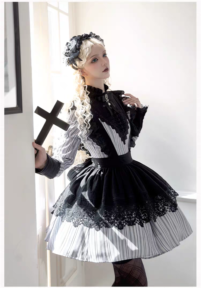| Product Name | Withpuji - Night Melody - Nun Gothic Lolita OP Dress, Apron, Necklace and Bow Brooch |