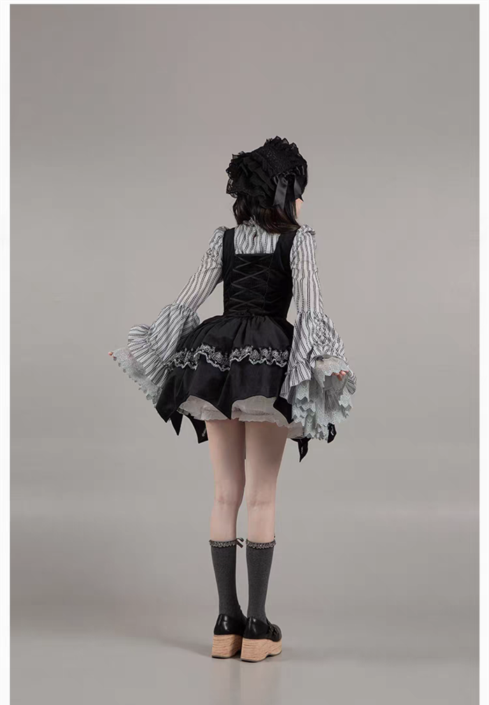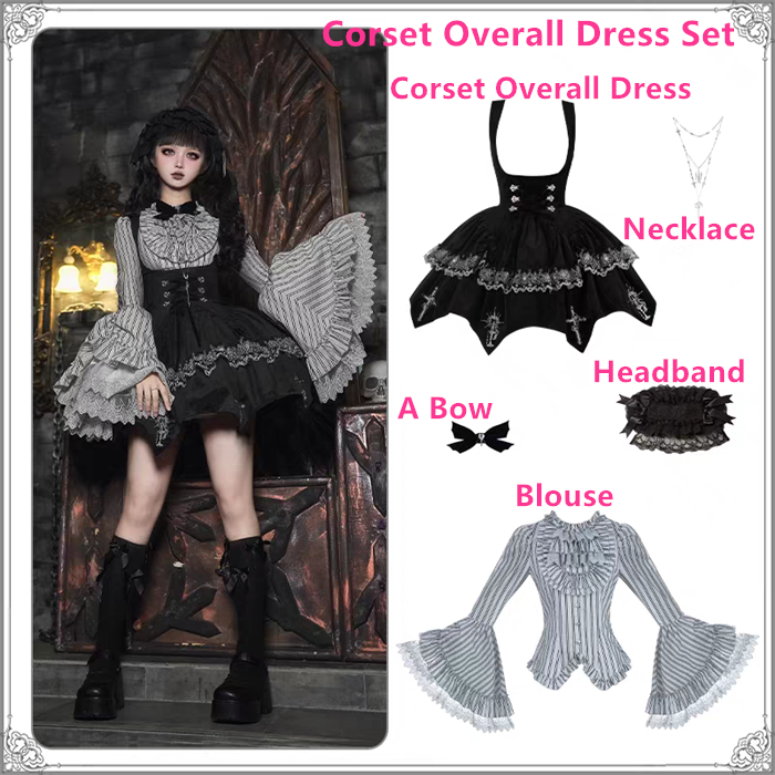 Corset Overall Dress Set = Corset Overall Dress + Blouse + A Bow + Necklace + Headband