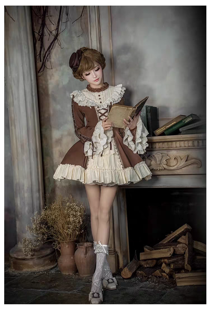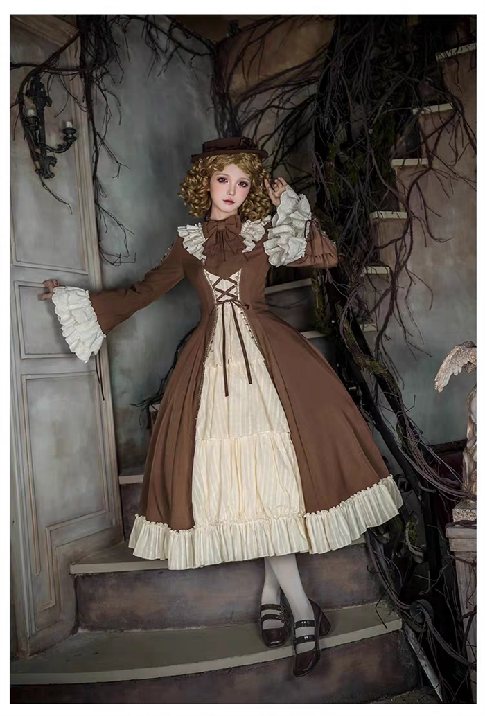 | Product Name | Withpuji - Walnut Box - Vintage Elegant Casual Classic Lolita OP Dress Set |