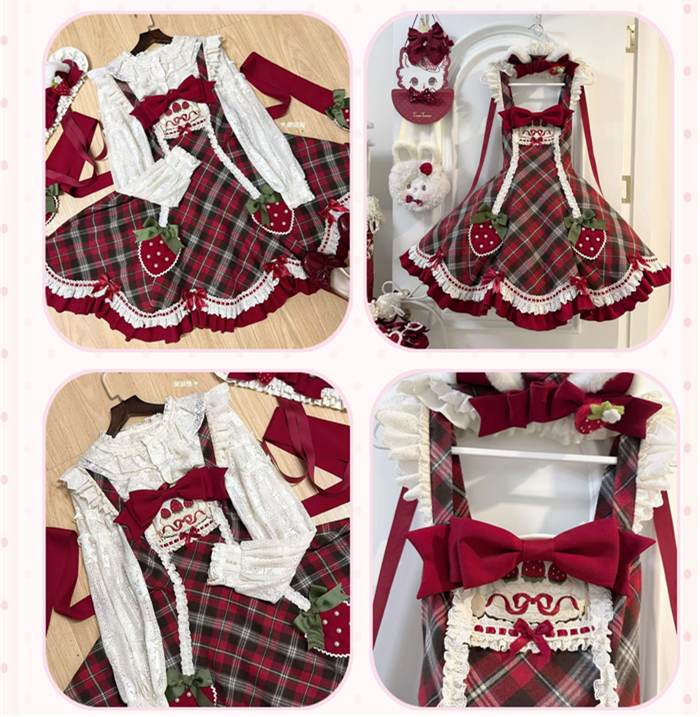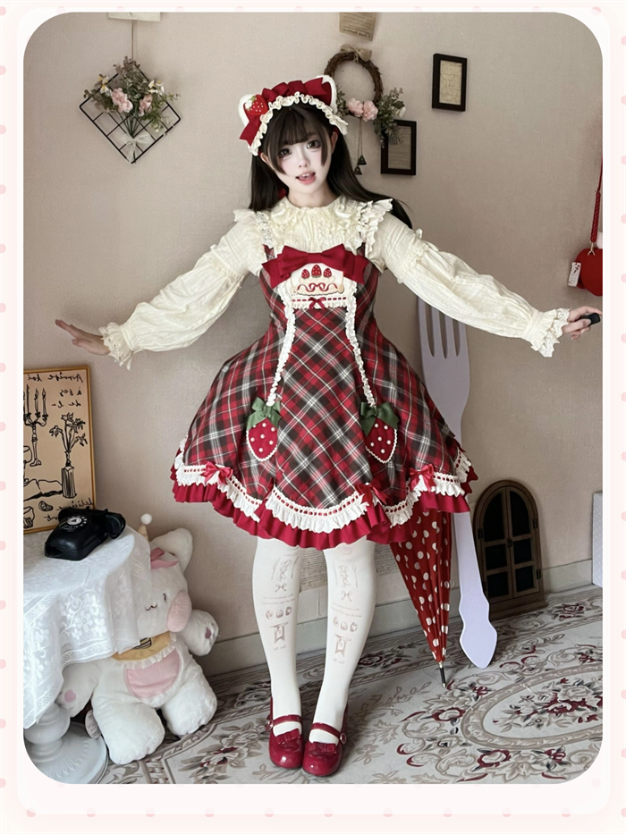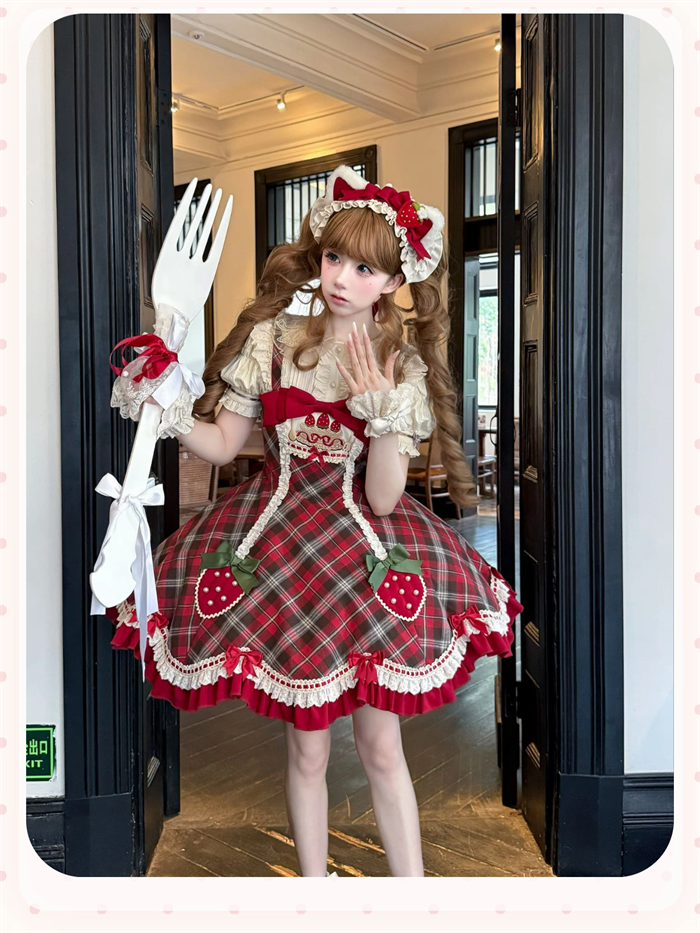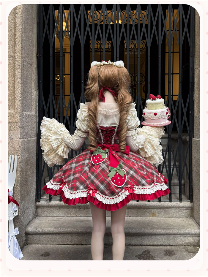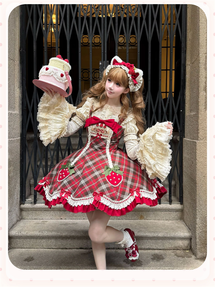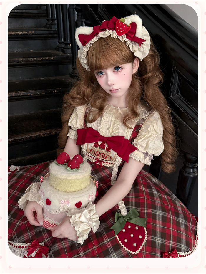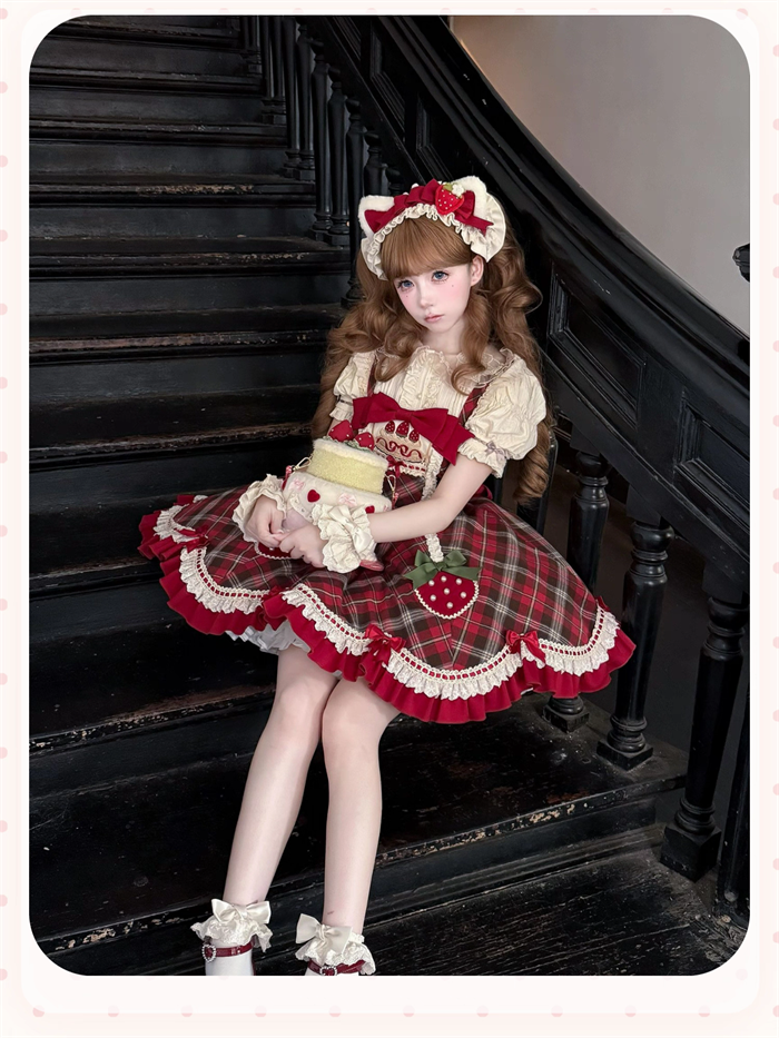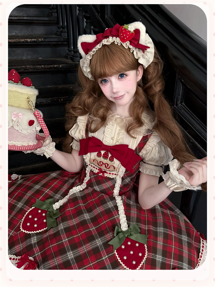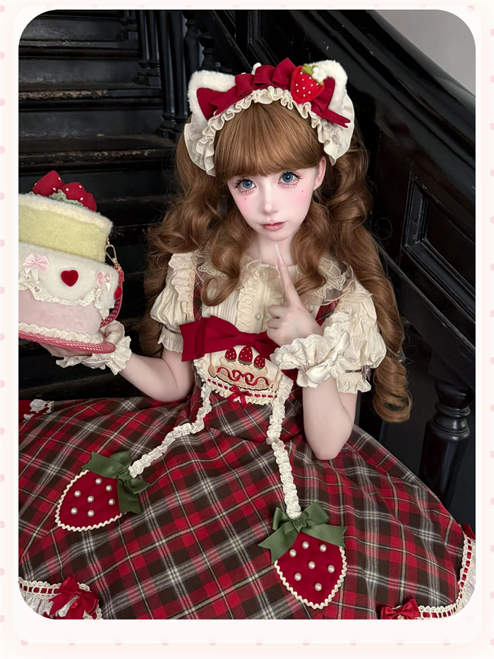 | Product Name | Yingji - Berry Box - Plaid Strawberry Sweet Lolita JSK and Headband |