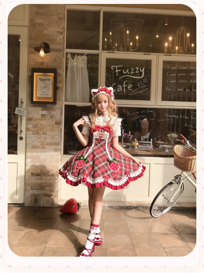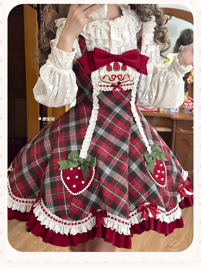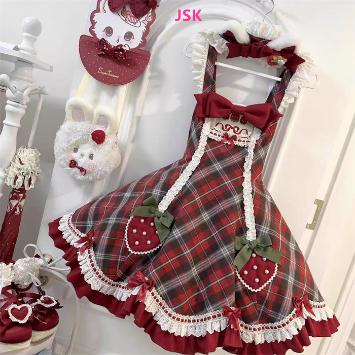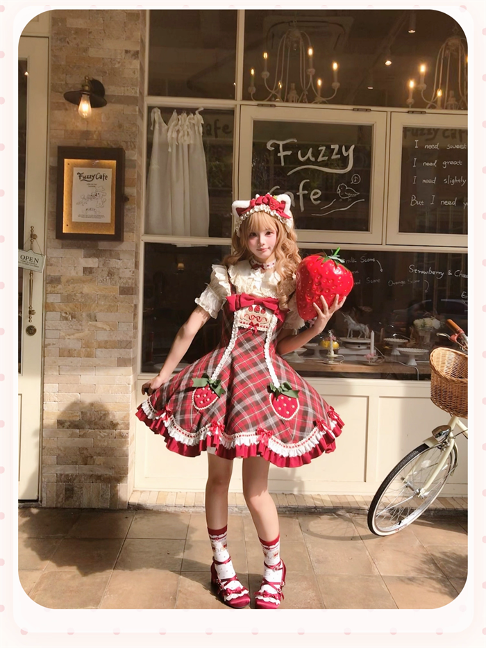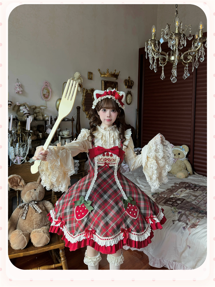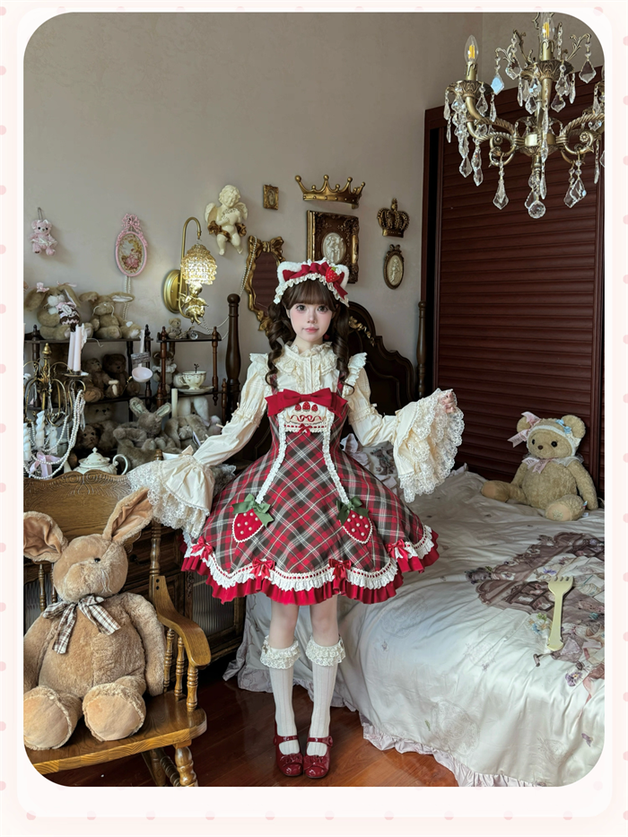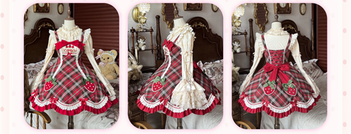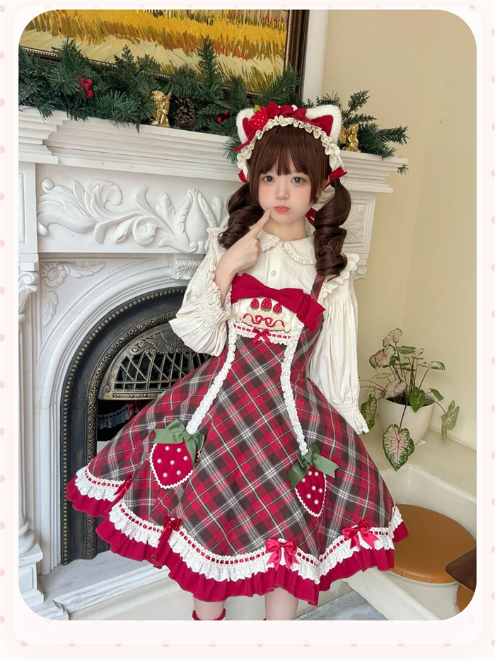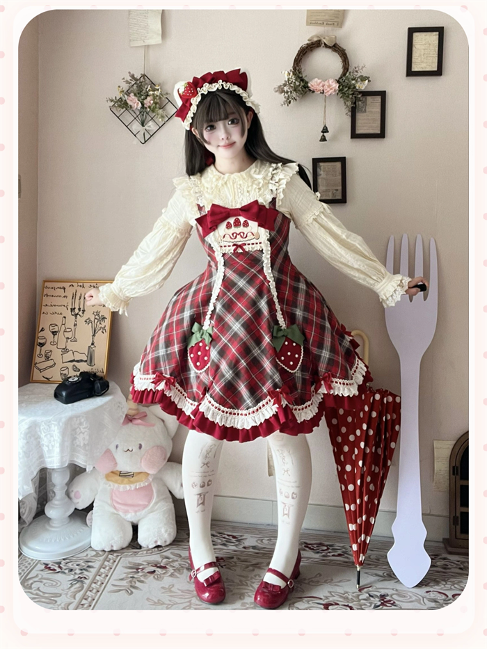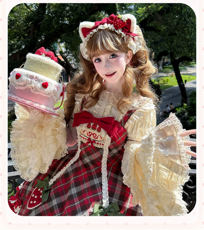 | Product Name | Yingji - Berry Box - Plaid Strawberry Sweet Lolita JSK and Headband |