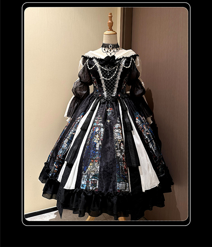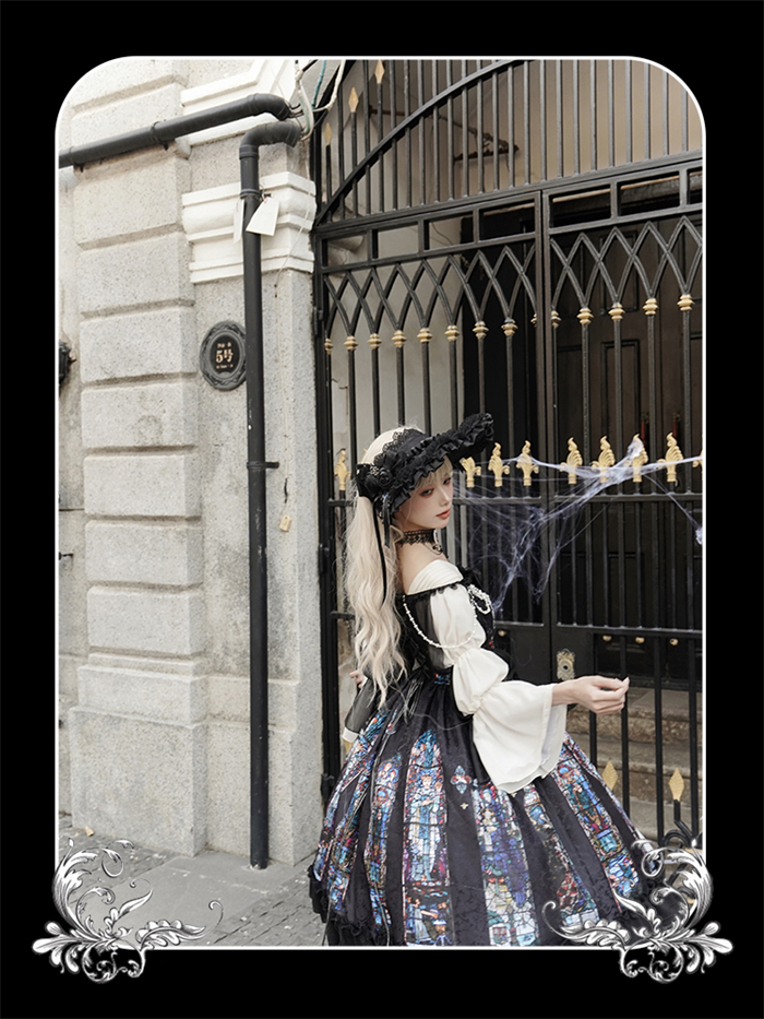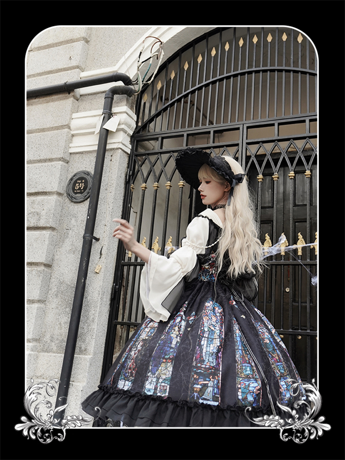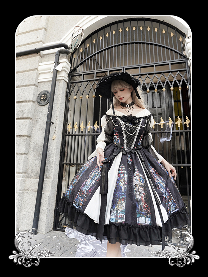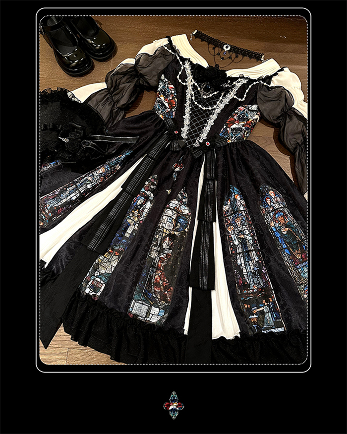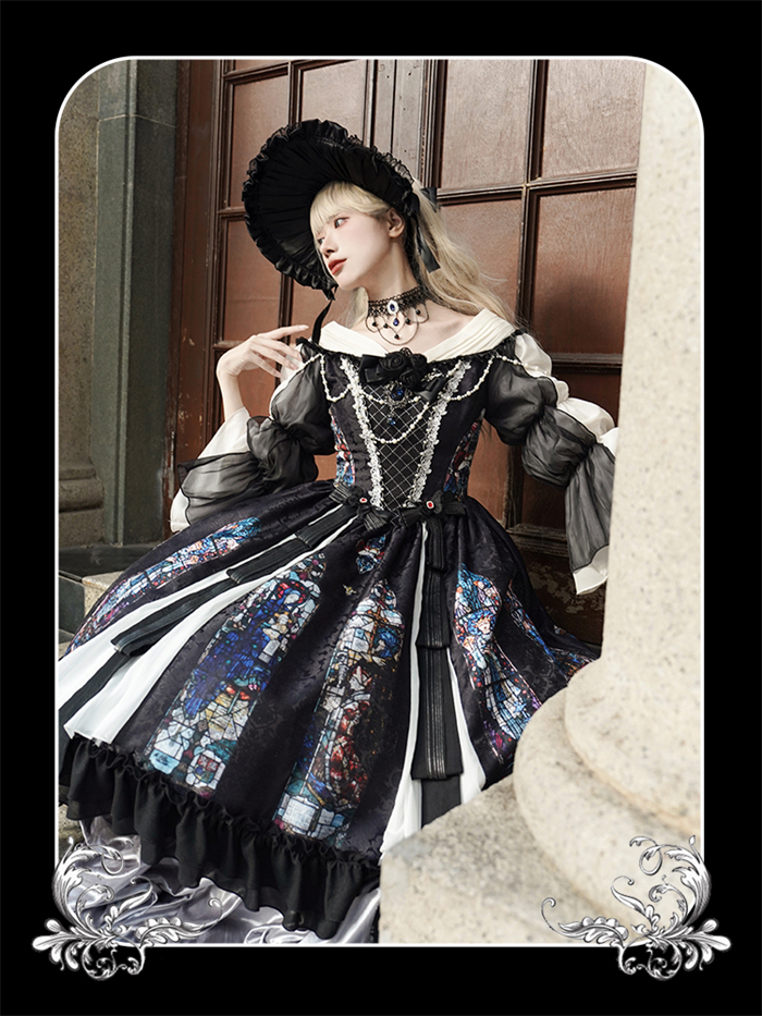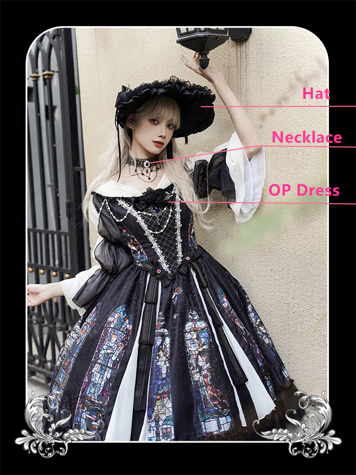 | Product Name | Yingluofu -Colorful Window- Vintage Elegant Classic Gothic Lolita OP Dress with Necklace and Hat |