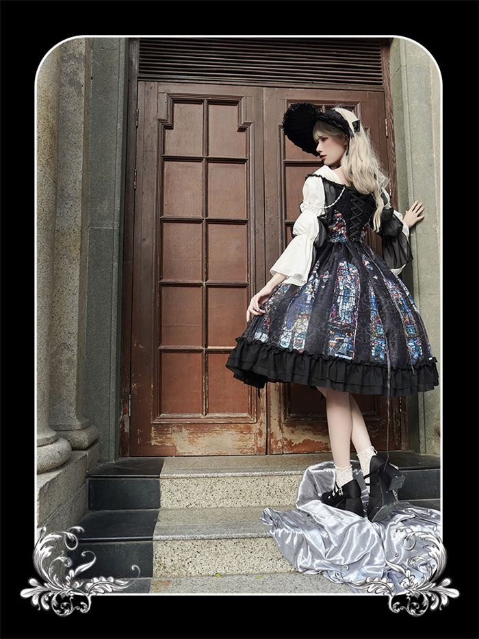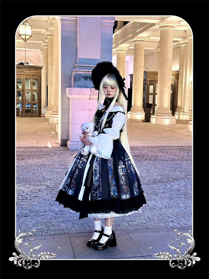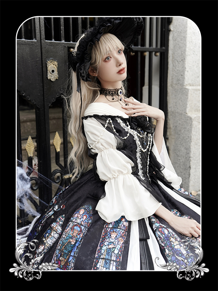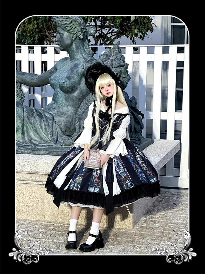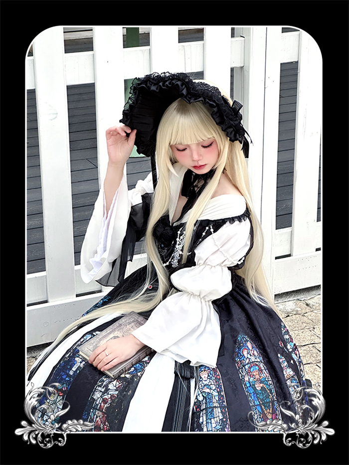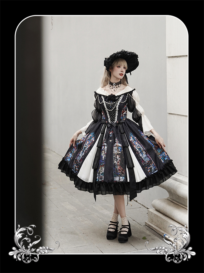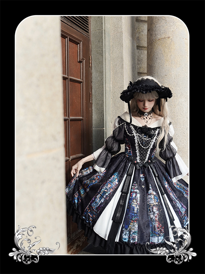 | Product Name | Yingluofu -Colorful Window- Vintage Elegant Classic Gothic Lolita OP Dress with Necklace and Hat |