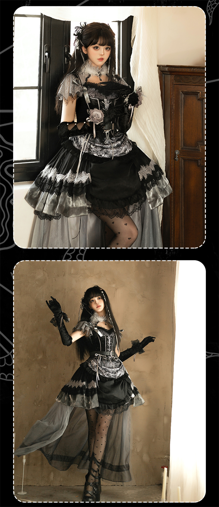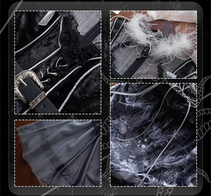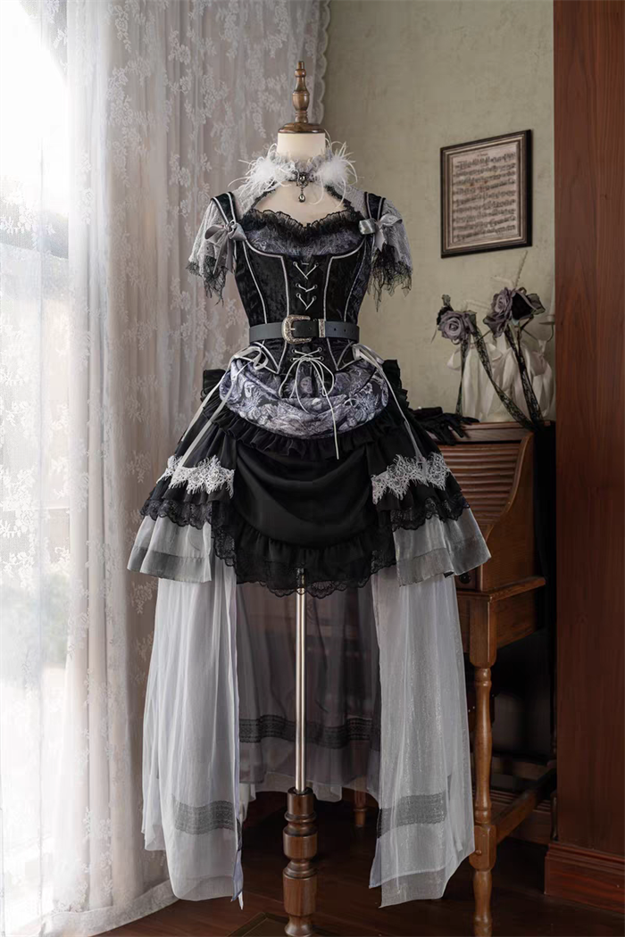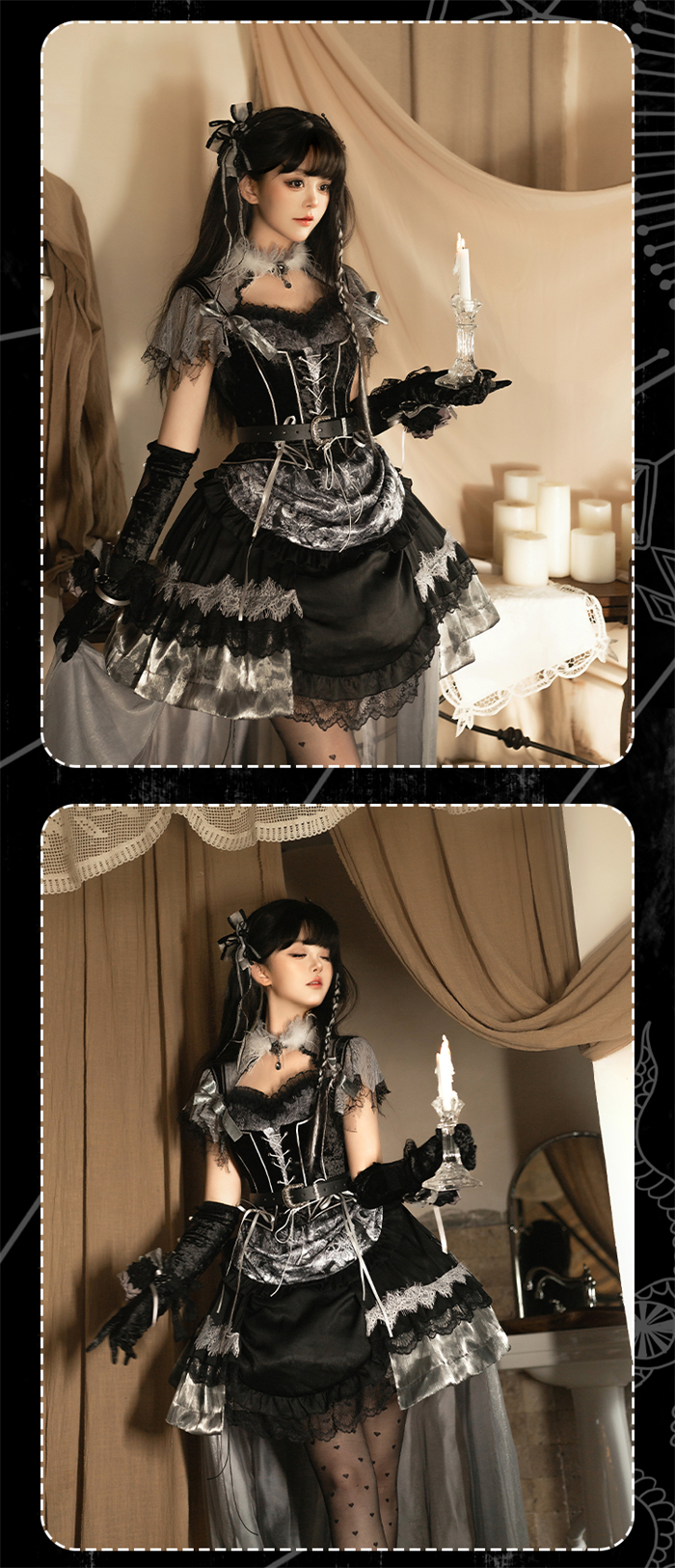 | Product Name | Yingluofu - Nighttime Rose - Elegant Gothic Lolita OP Dress, Tailing, Corset and Accessories Set |