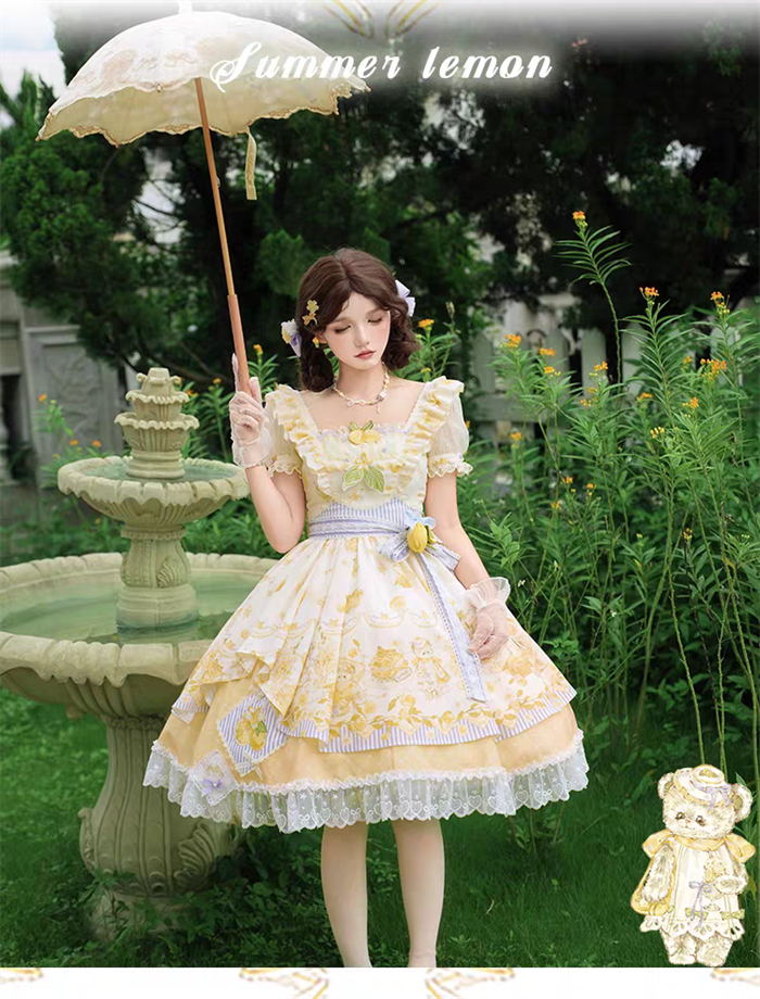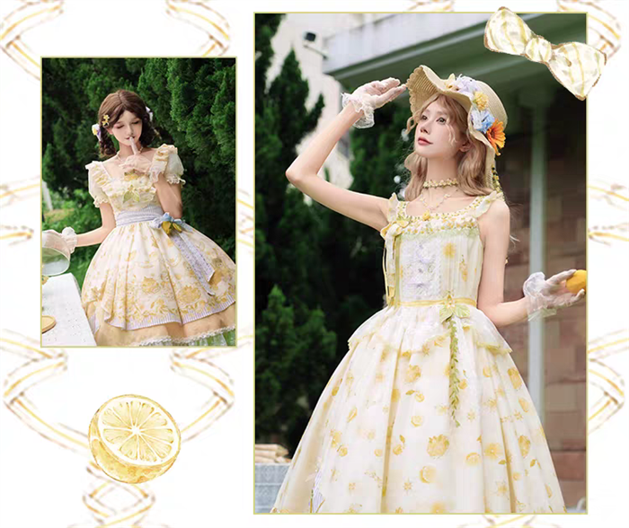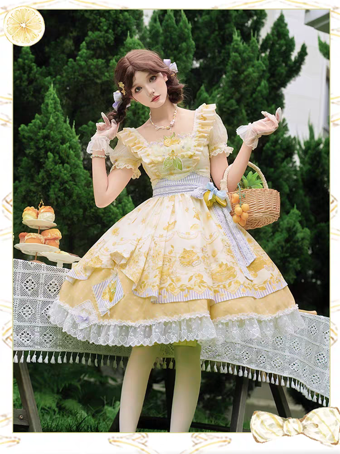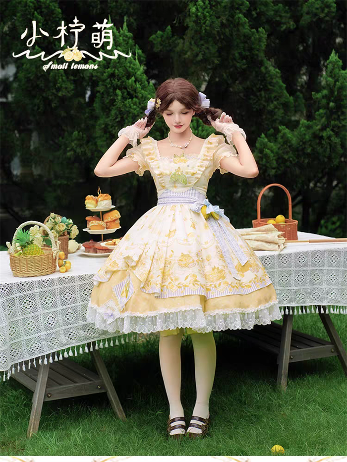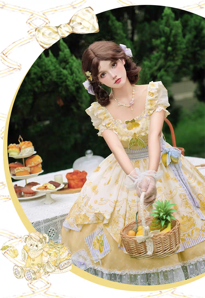 | Product Name | Yingluofu - Small Lemons - Casual Sweet Lolita OP Dress Full Set |