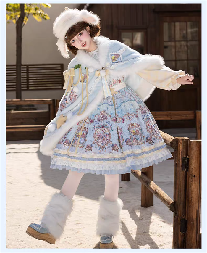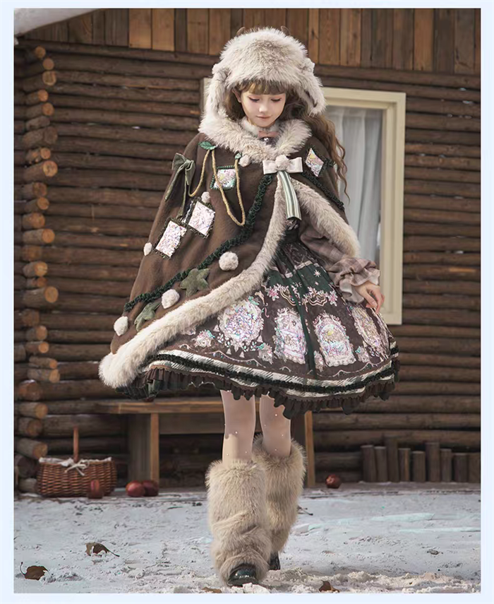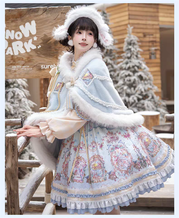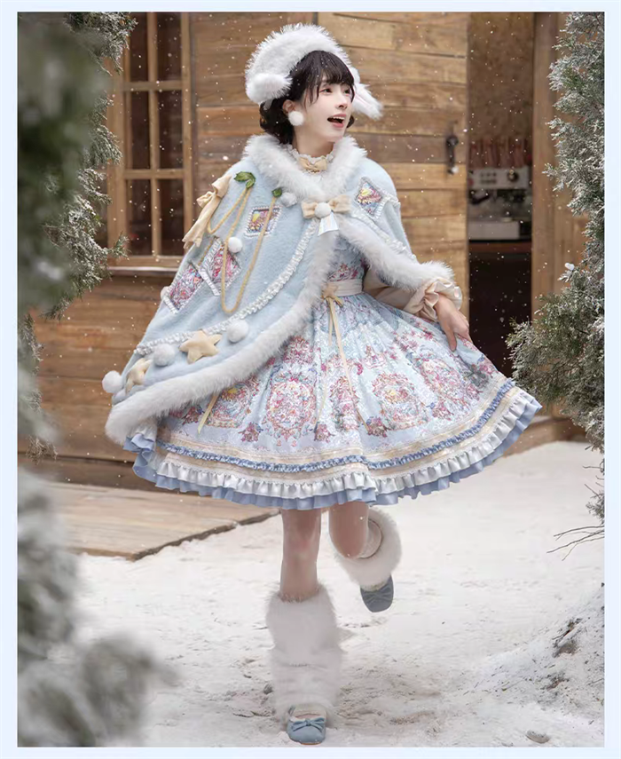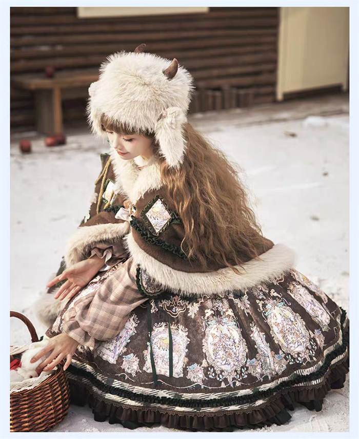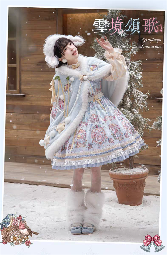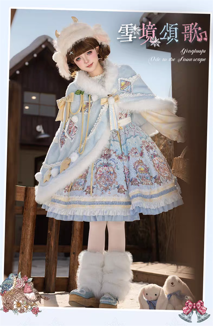 | Product Name | Yinluofu -Ode to the Snowy Scape- Elegant Vintage Sweet Lolita OP Dress with Wool Leg Warmers, Wool Cape and Wool Hat |