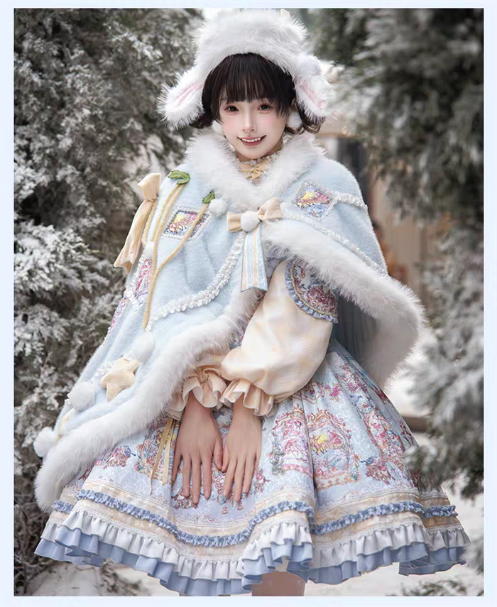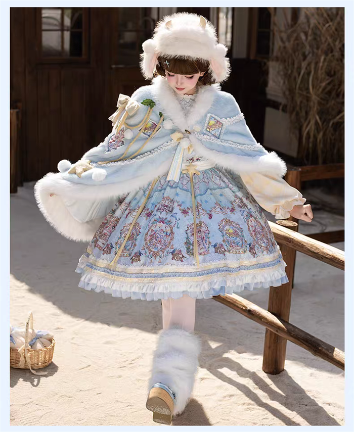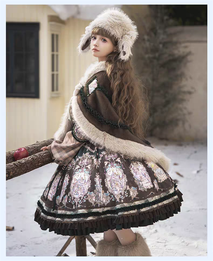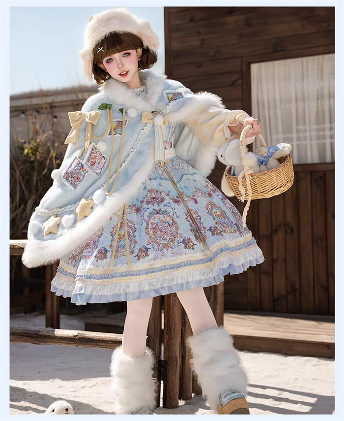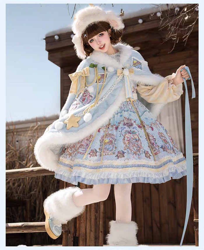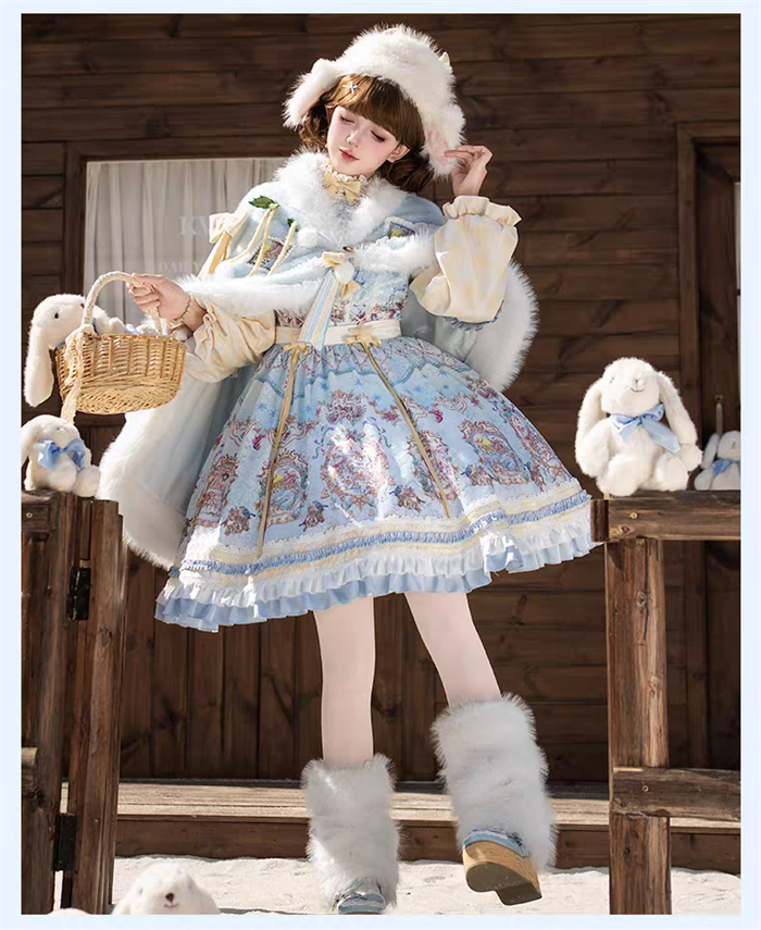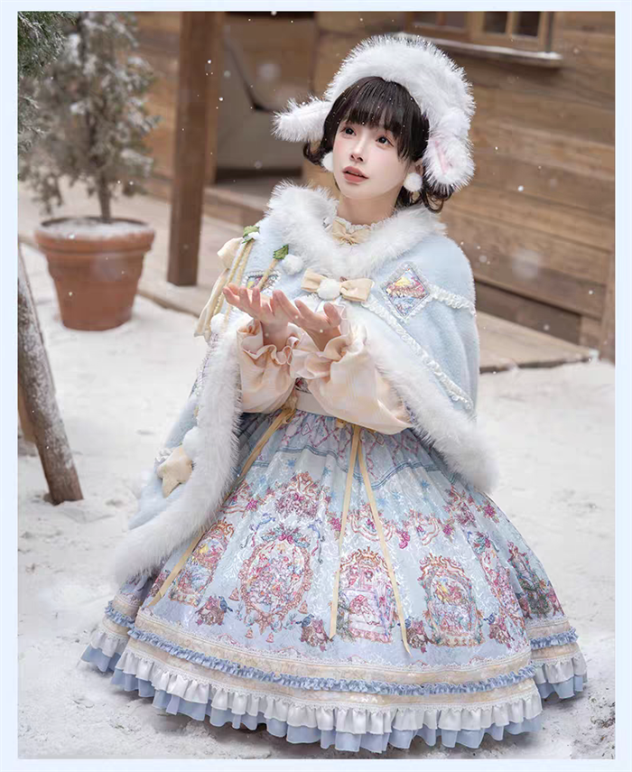| Product Name | Yinluofu -Ode to the Snowy Scape- Elegant Vintage Sweet Lolita OP Dress with Wool Leg Warmers, Wool Cape and Wool Hat |