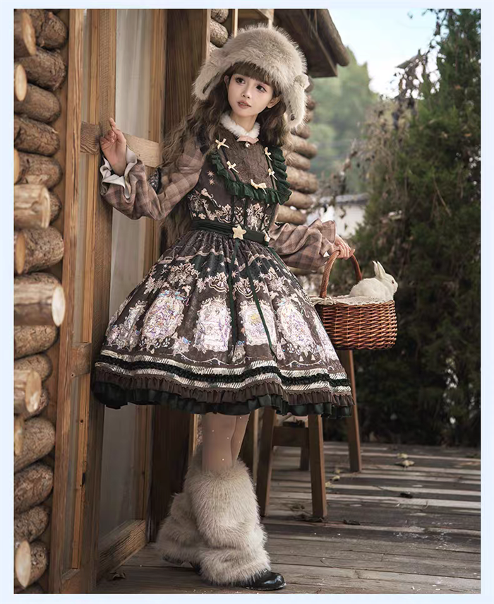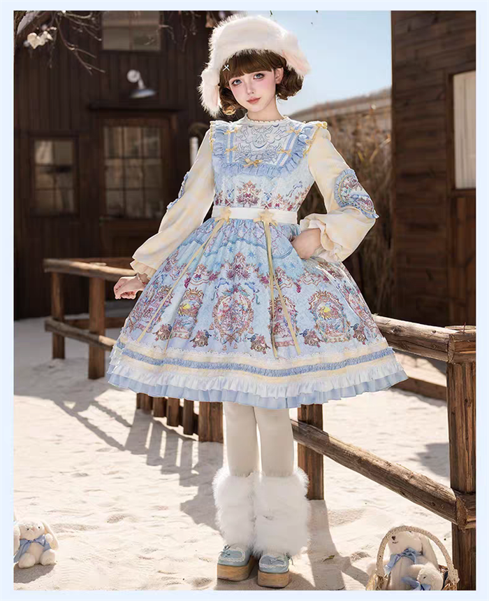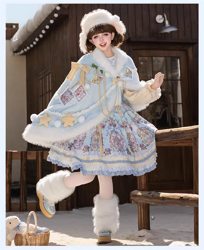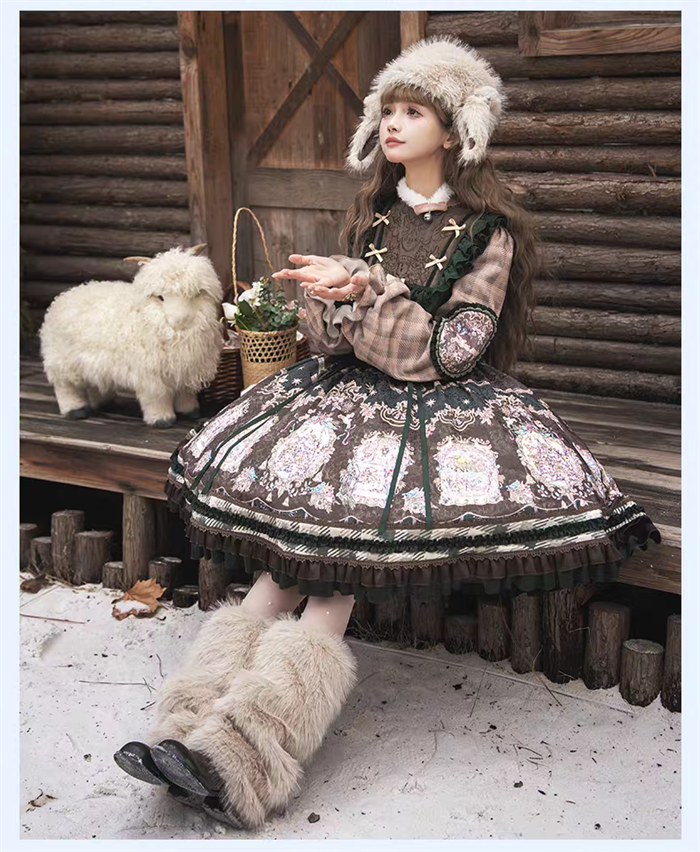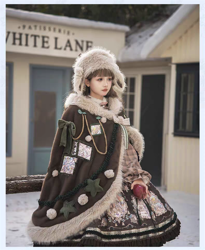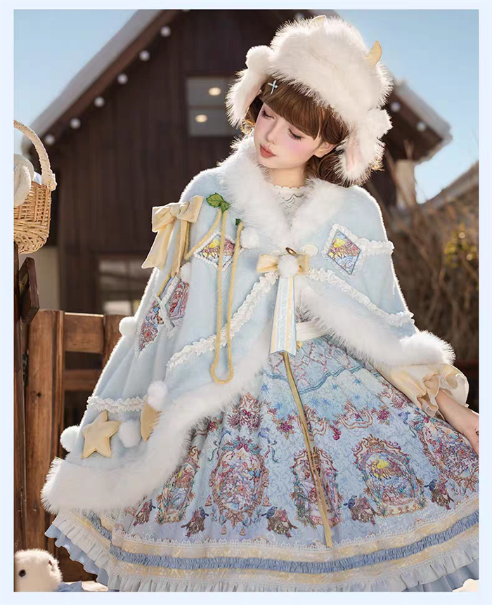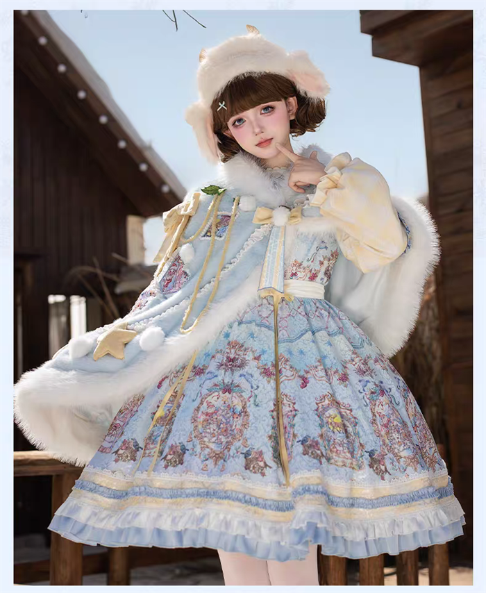 | Product Name | Yinluofu -Ode to the Snowy Scape- Elegant Vintage Sweet Lolita OP Dress with Wool Leg Warmers, Wool Cape and Wool Hat |