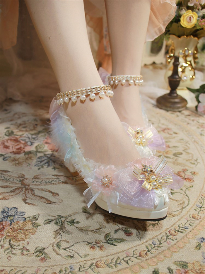 | Product Name | Yiyewuyu -Tea Party Wedding Pearls Princess Glitter High Heels Lolita Shoes |