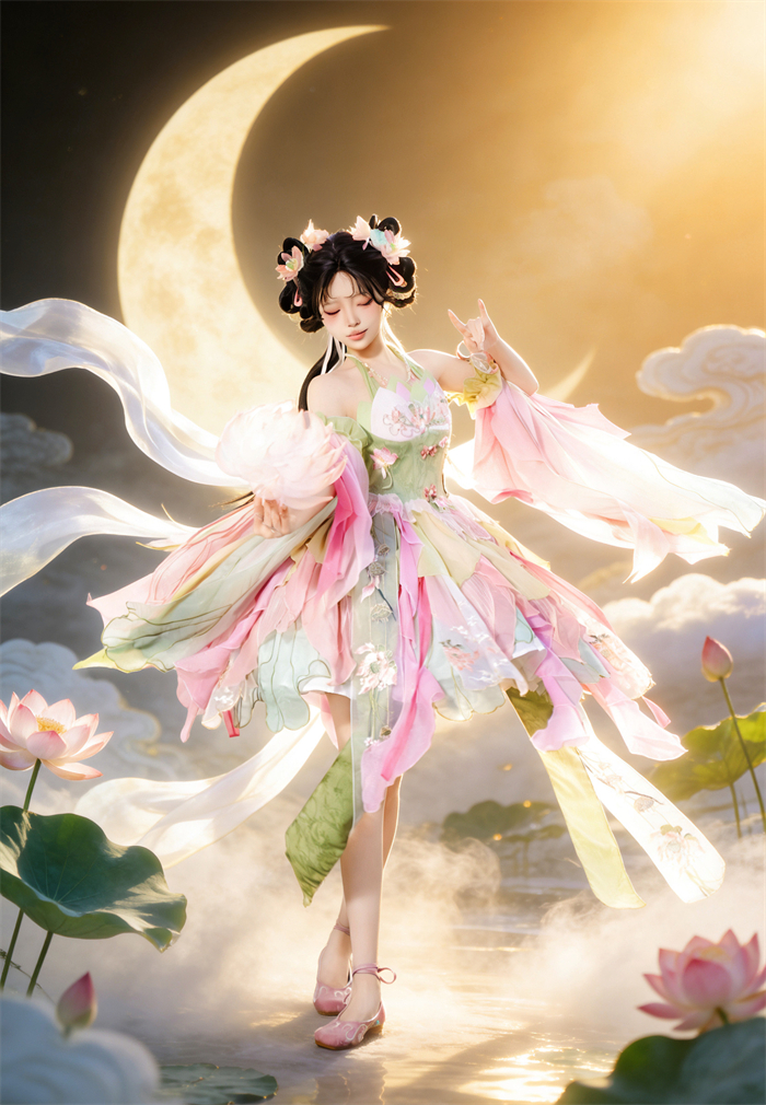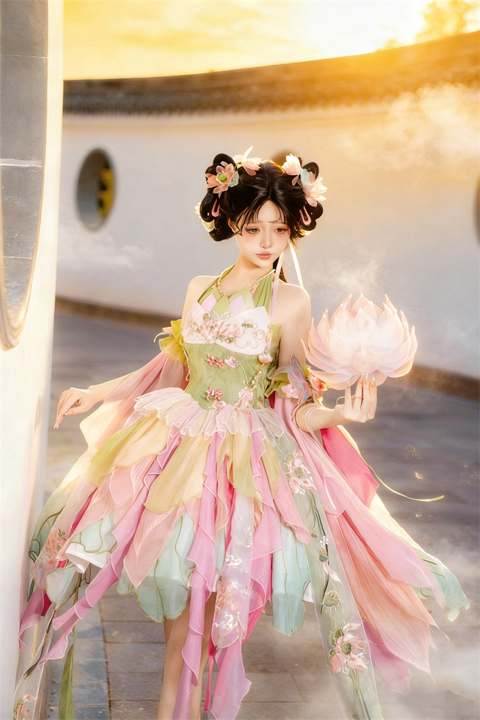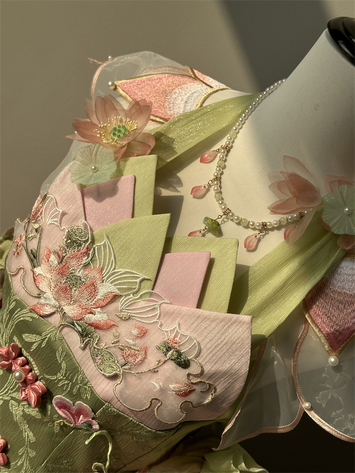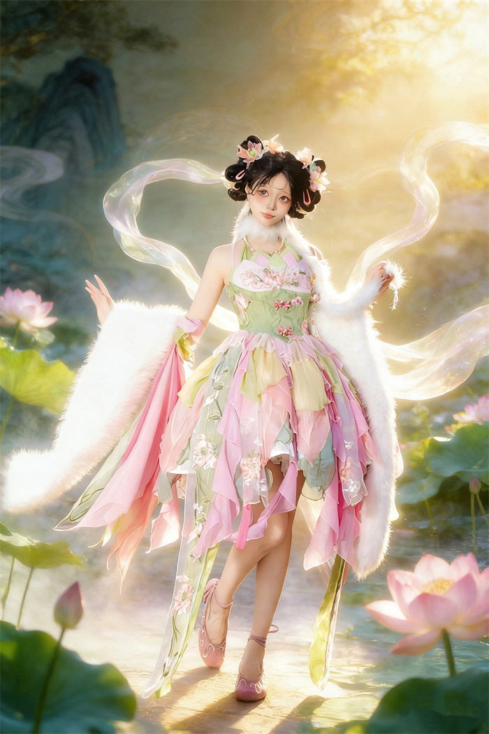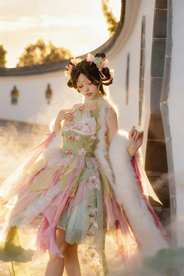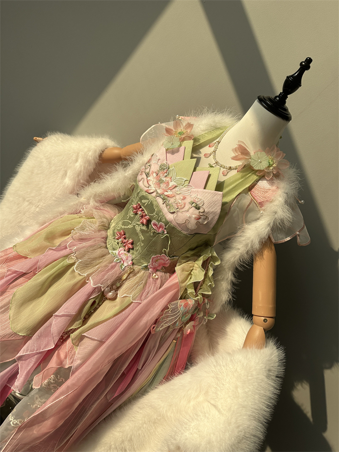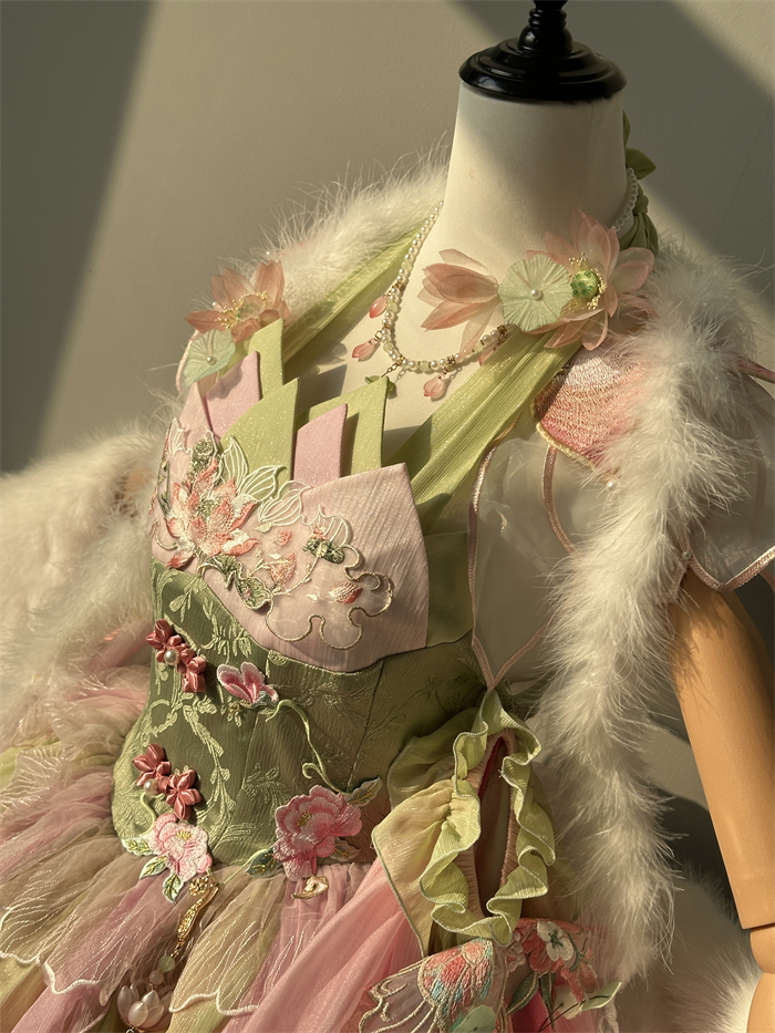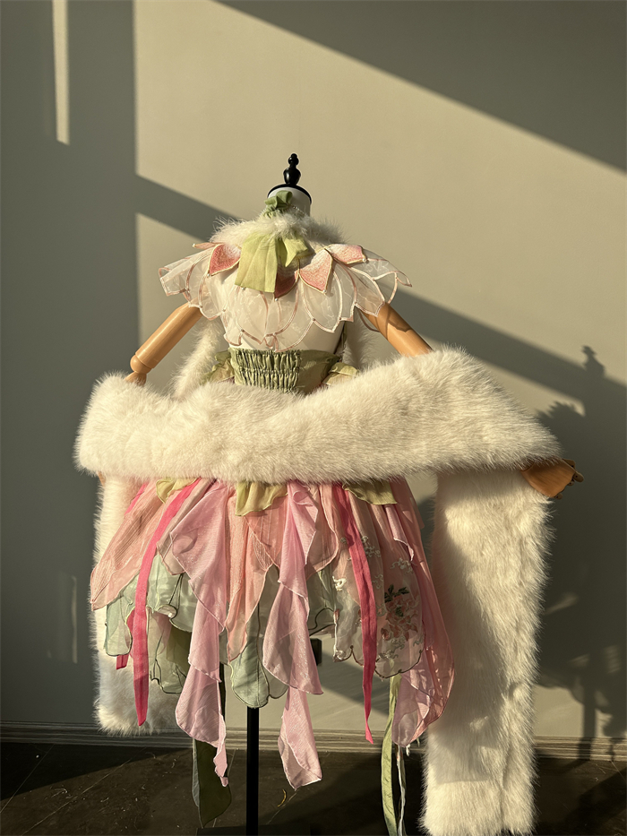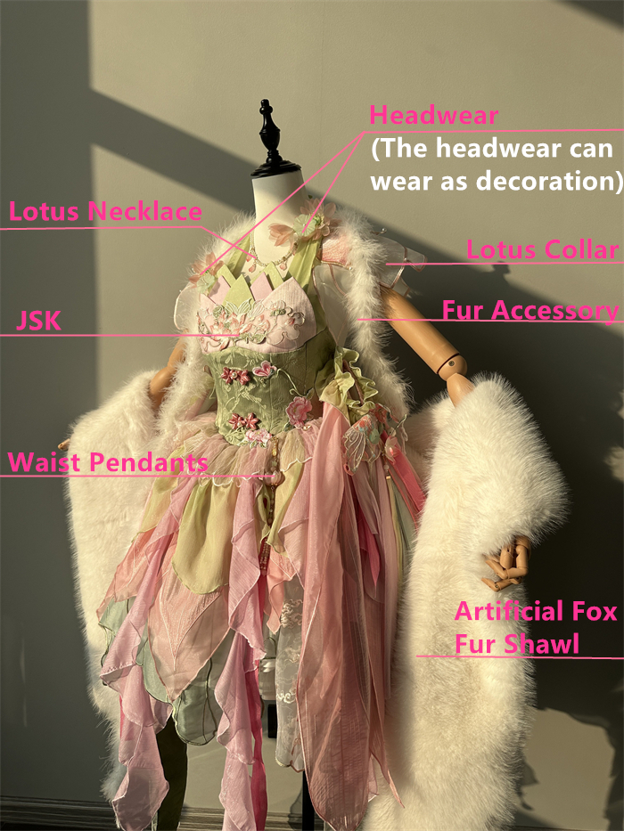 Full Set=JSK+Headwear+Lotus Necklace+Waist Pendants+Fur Accessory+Artificial Fox Fur Shawl+Lotus Collar