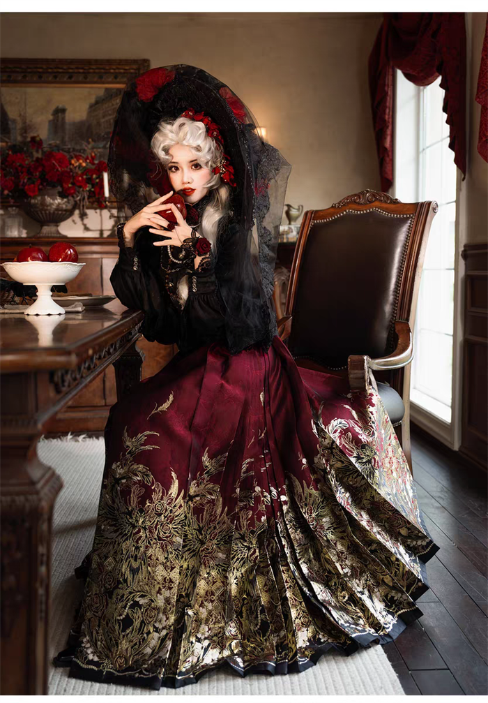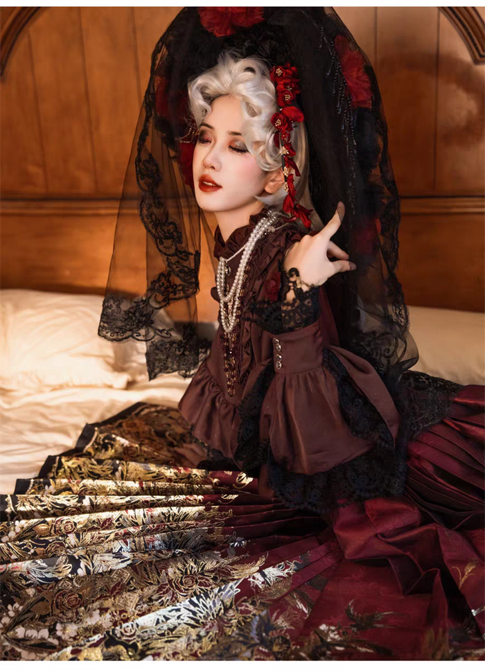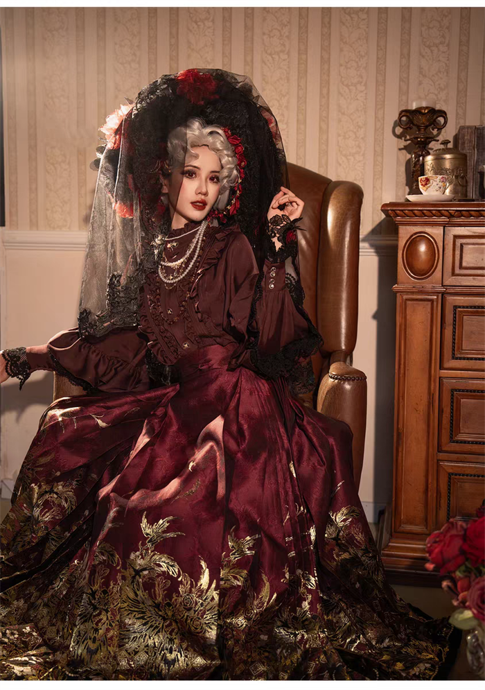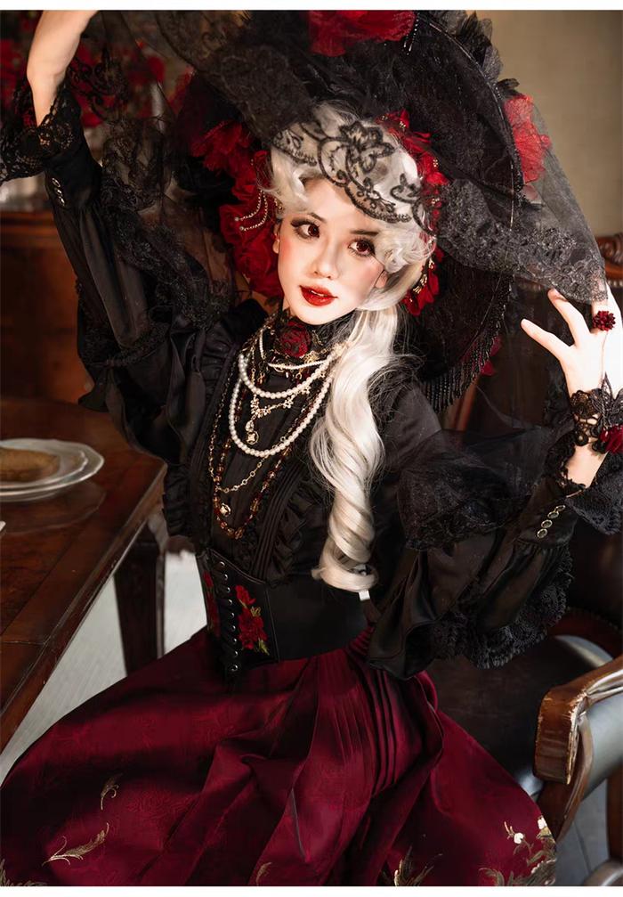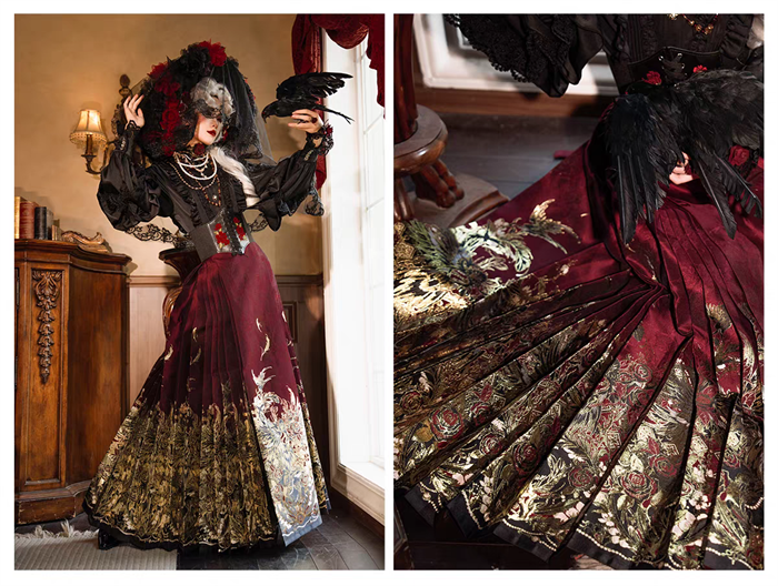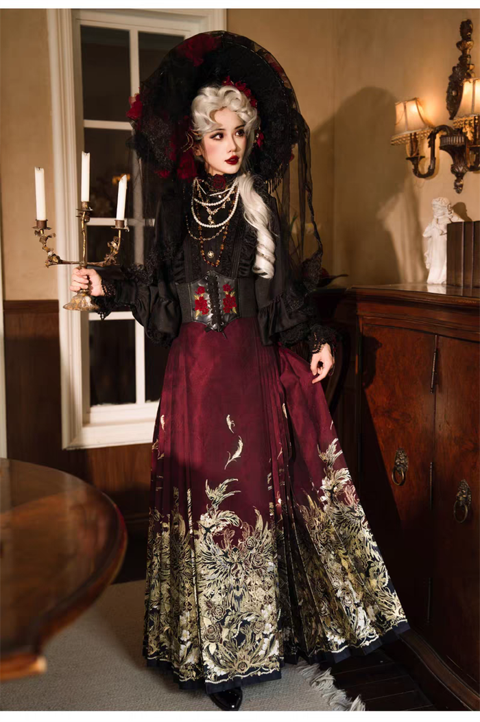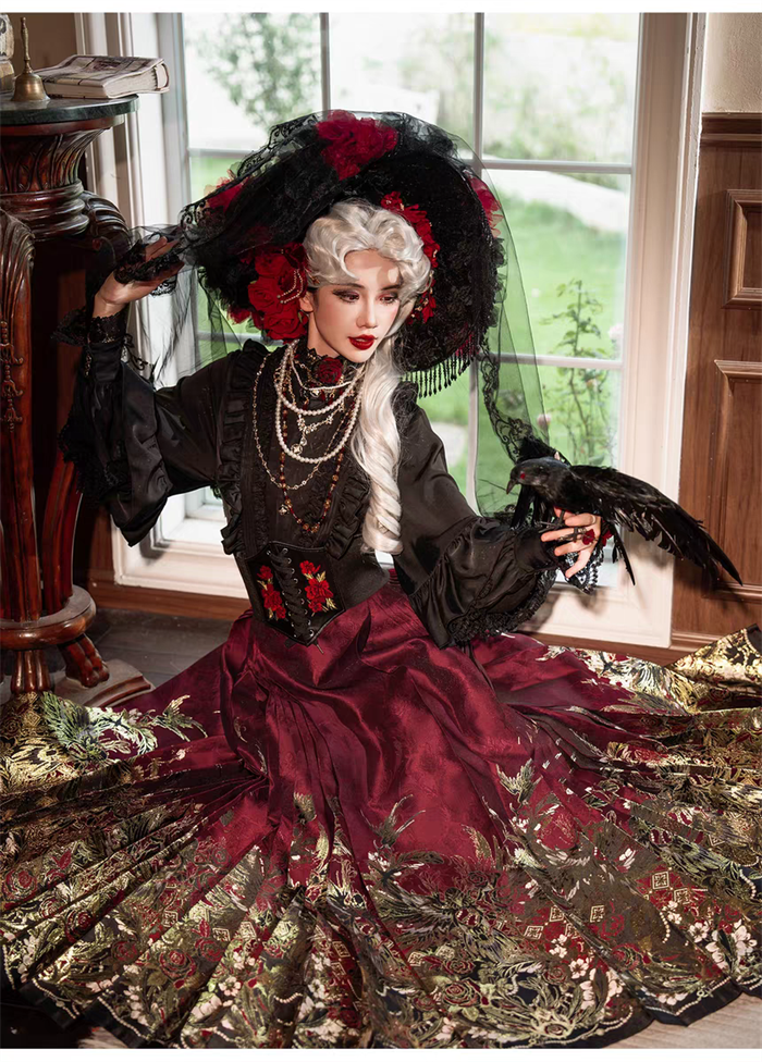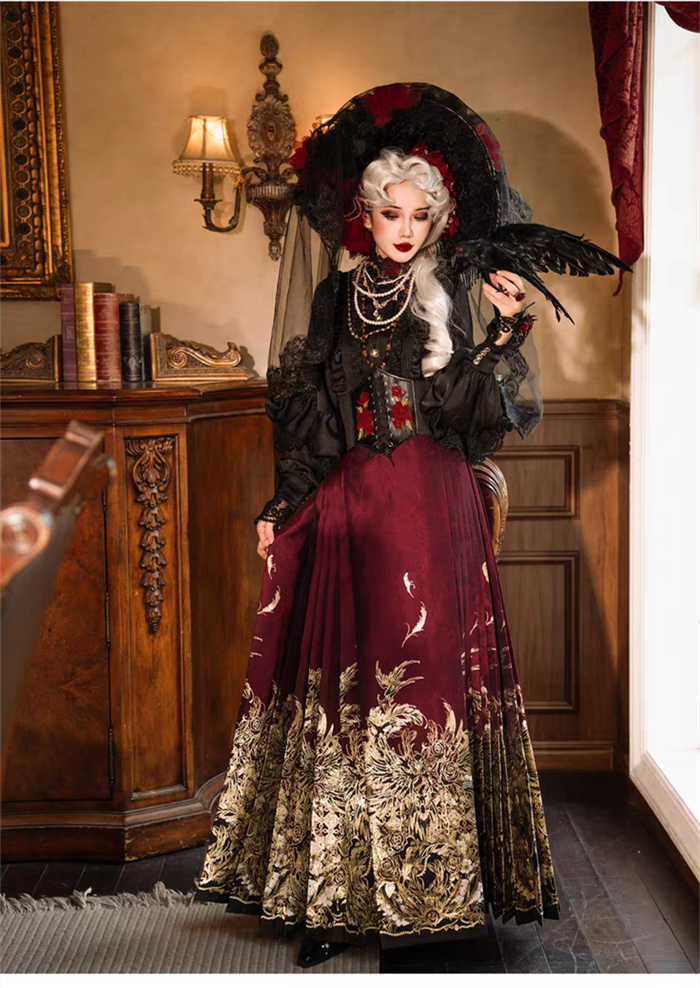 | Product Name | Yuemiaojing -Crow- Embroidery Palace Chinese Qi Classic Gothic Lolita Blouse and Skirt set |